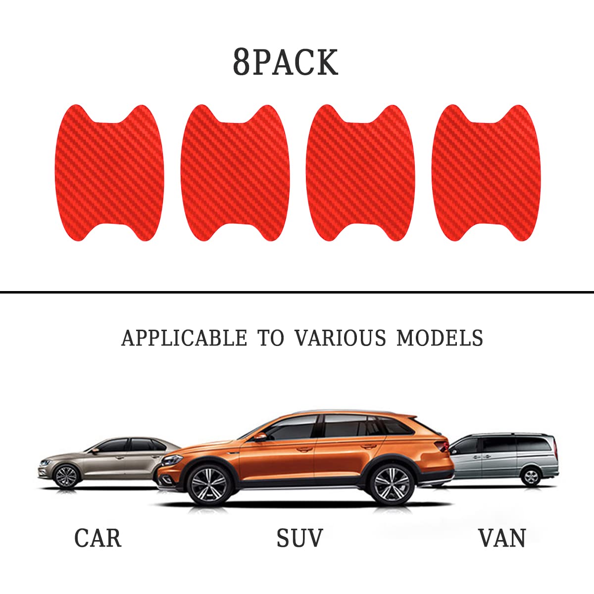 【Carbon Fiber Scratch Protection】: This car door handle sticker is designed with carbon fiber texture, which looks mordern and stylish, this sticker is a great decoration for your vehicle, it add some fashion and personality and makes your vehicle stand out and eye catching. This handle sticker has a smooth edge so it will not do harm to your vehicle.