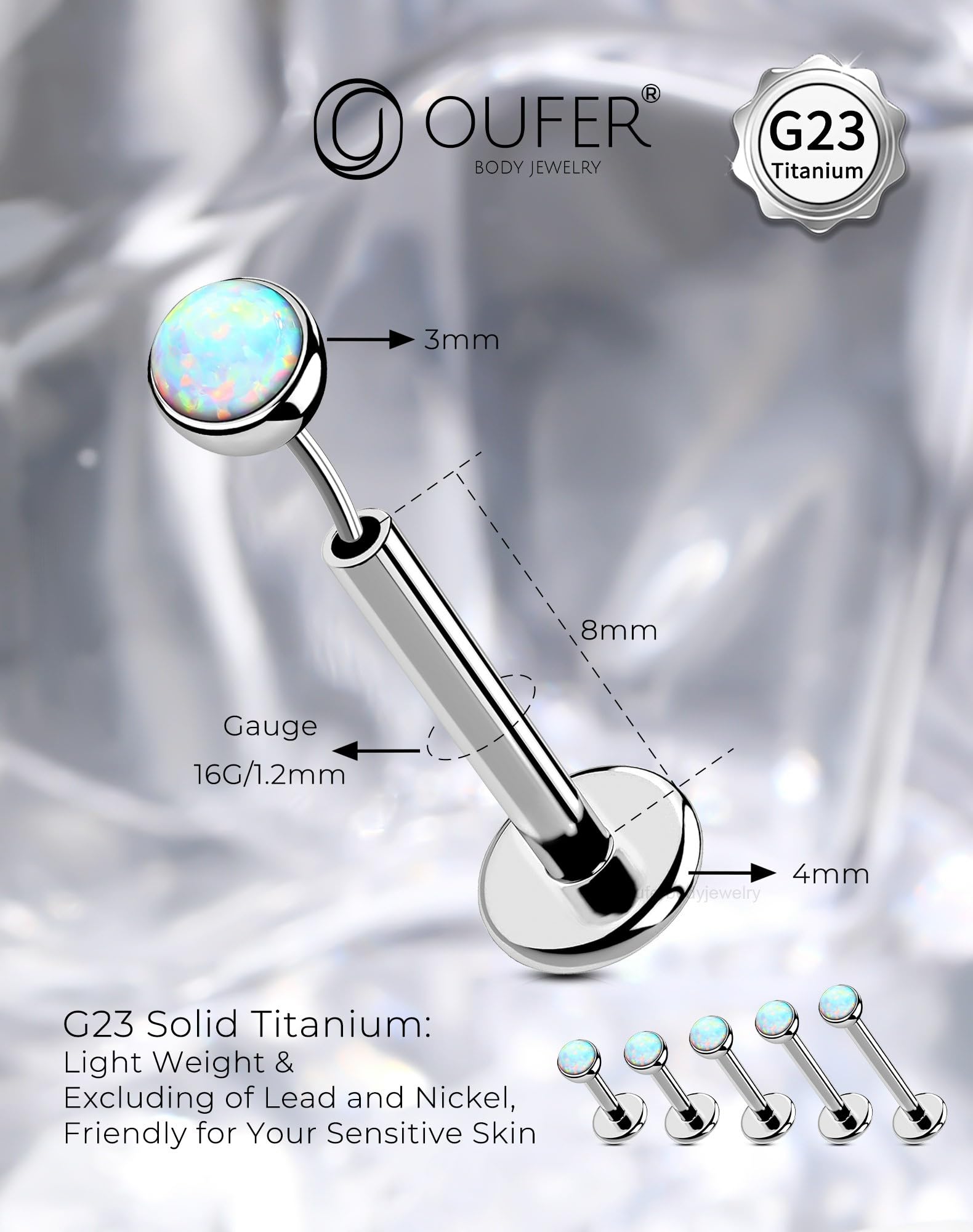 【Stylish 3MM Opal Design】: This G23 solid titanium opal flat back nose rings stud's sleek design paired with a gorgeous opal creates a unique blend of personality and elegance, making you the center of attention in any setting.