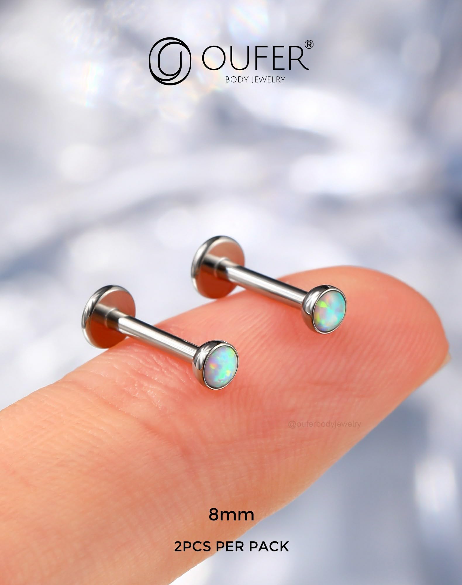 【Standard Threadless Helix Earring Studs Size】: Gauge = 16g(1.2mm), Length= 8mm(5/16''), Diameter of opal = 3mm. The helix earring studs are normal and standard size for helix tragus lip piercing jewelry. Available in multiple sizes to cater to different needs.