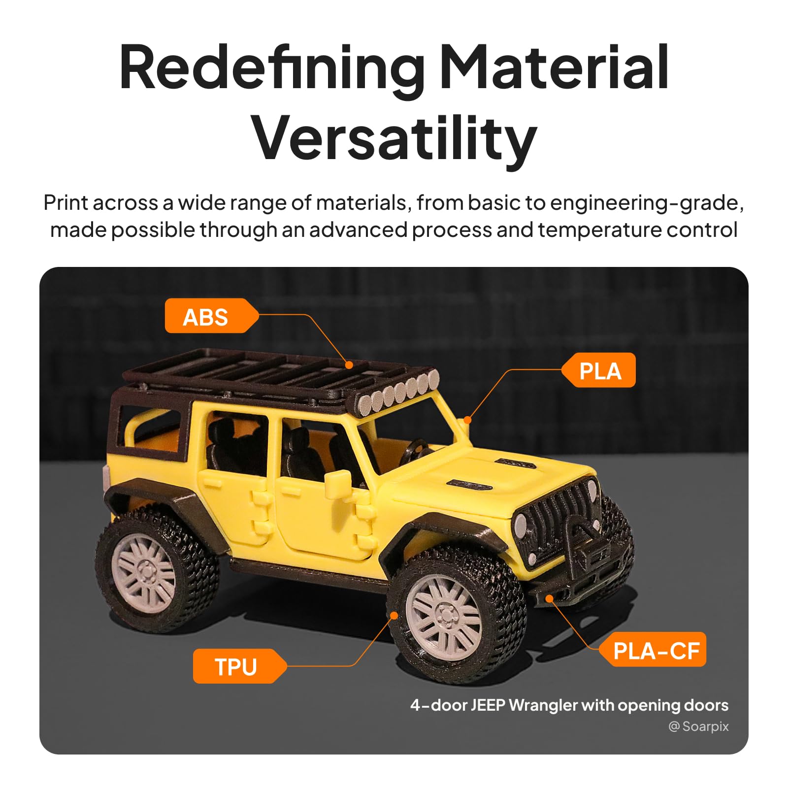 Redefining Material Versatility - Print across a wide range of materials, from basic to engineering-grade, made possible through an advanced process and temperature control