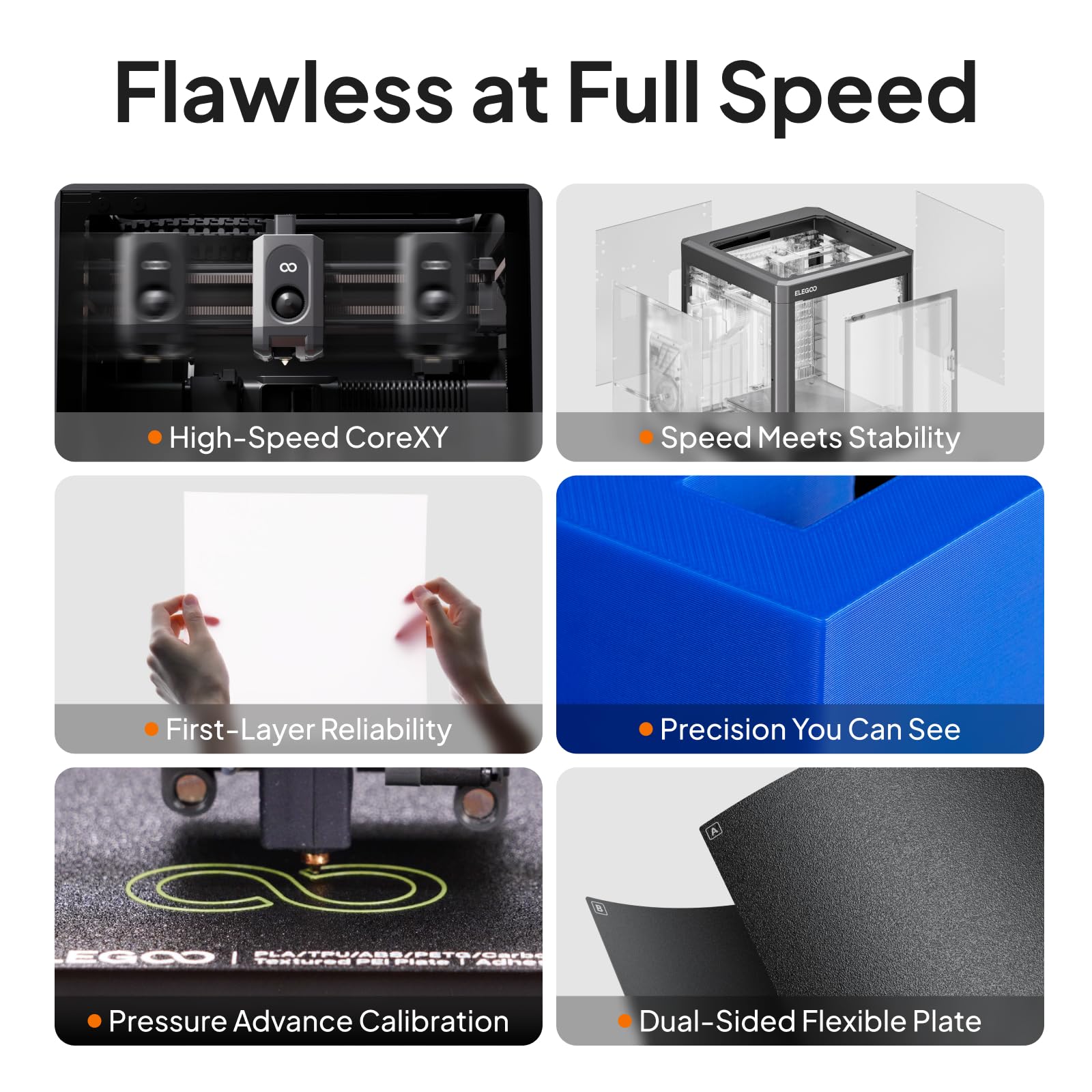 Designed for Speed - Enjoy blazing speeds up to 500 mm/s and acceleration of 20,000 mm/s². The advanced CoreXY system and rigid aluminum frame team up to deliver fast, precise, and stable prints every time