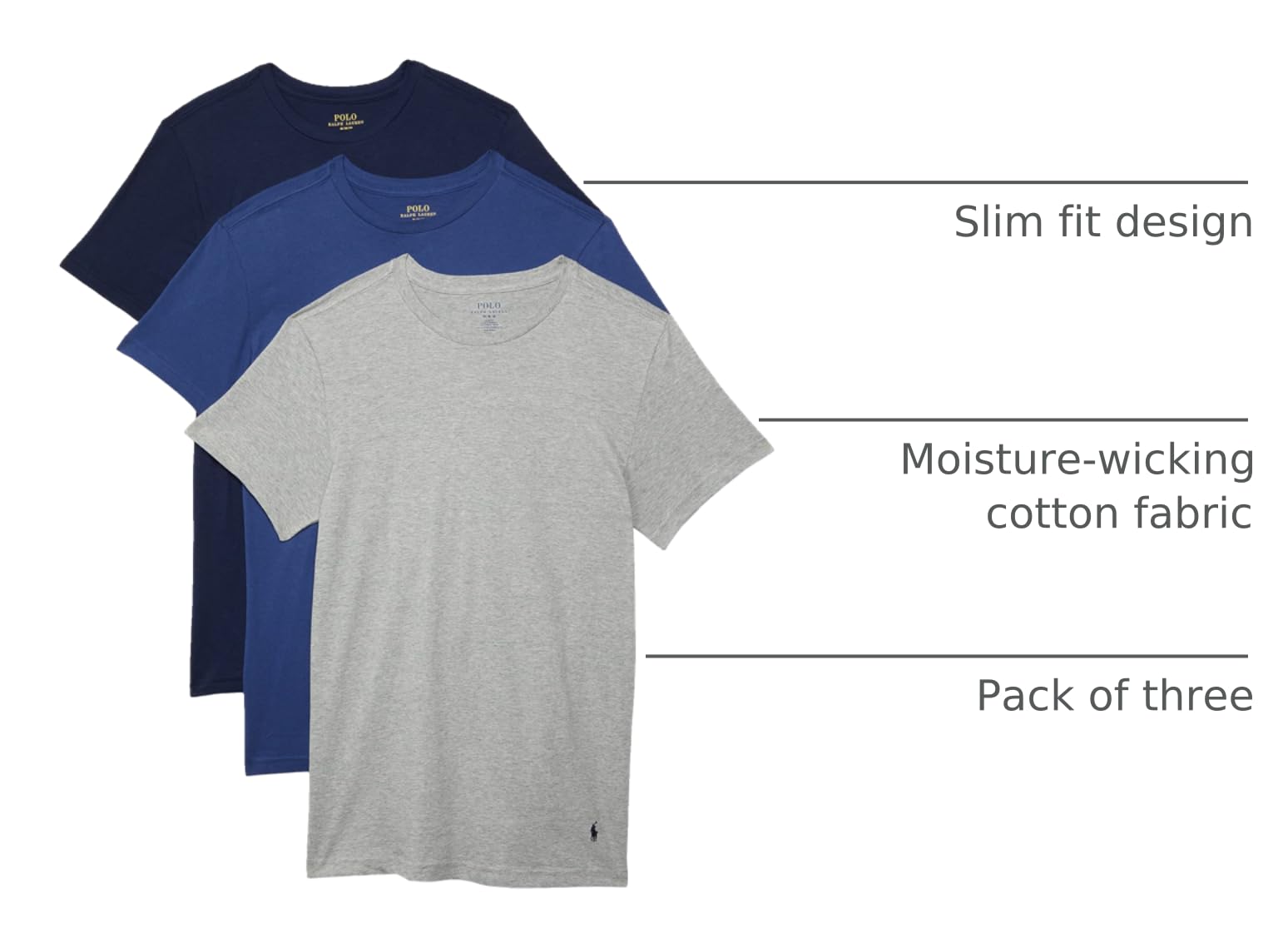 Polo Ralph Lauren Slim Fit with Wicking 3-Pack Crew Undershirts is a staple for your wardrobe essentials.