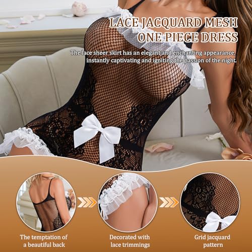 Description Babydoll lingerie for women is made of nylon & spandex,breathable and comfortable,excellent flexibility, The super stretchy fabric it is great for close-fiting wear. The fishnet lingerie comes in lace up halter, rhinestone studded cut-out design,and super stretchy fabric which fits for various body shapes,can show off your curve well,make you more attractive. This mesh chemise can wear it as a lingerie fishnet dress, sleeping dress, or as a club dress which will look great with jeans,shorts, skirts and heels for a night out, you can also wear as bikini cover up, it will bring you more outfit inspiration. Applicable Occasions: The mesh babydoll bodysuit is suitable for nightwear, sleepwear, underwear, or clubwear. Perfect for lingerie party,Valentine's day, anniversaries, dating, wedding nights, honeymoon, and beach swimwear cover up etc.Enjoying your romantic and exciting time. Package Content:1x Women Fishnet Chemise Rhinestone Studded Cut-out Dress(No G-string,Please Hand Wash to Avoid Damage)