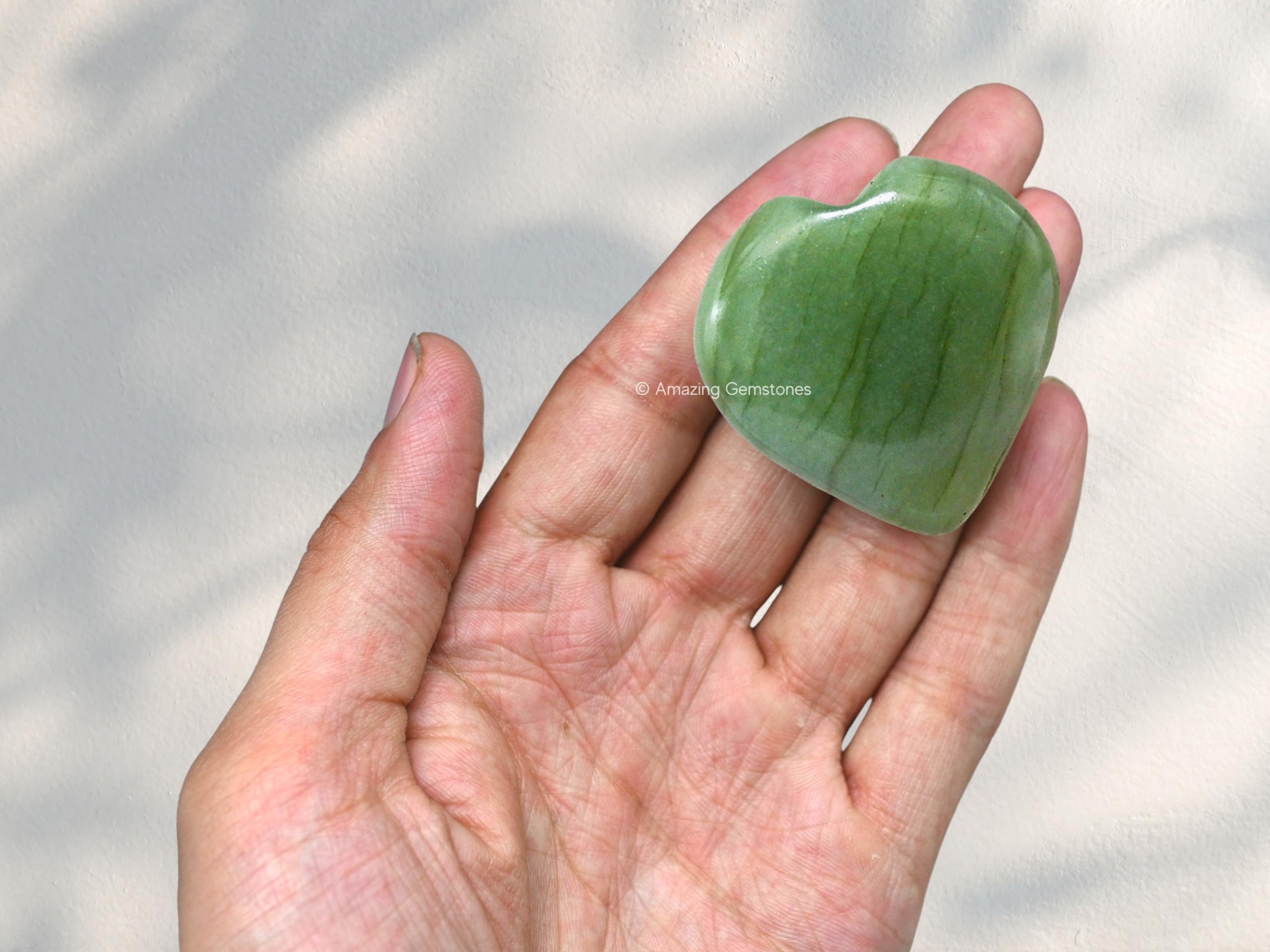Light Green Aventurine Crystal Heart Palm Worry Stones are polished heart shaped stones that can be used for Back, Neck, Face and Feet Massage therapy, Chakra Balancing, Reiki Healing, Crystal Grid Meditation and many other esoteric healing practices.