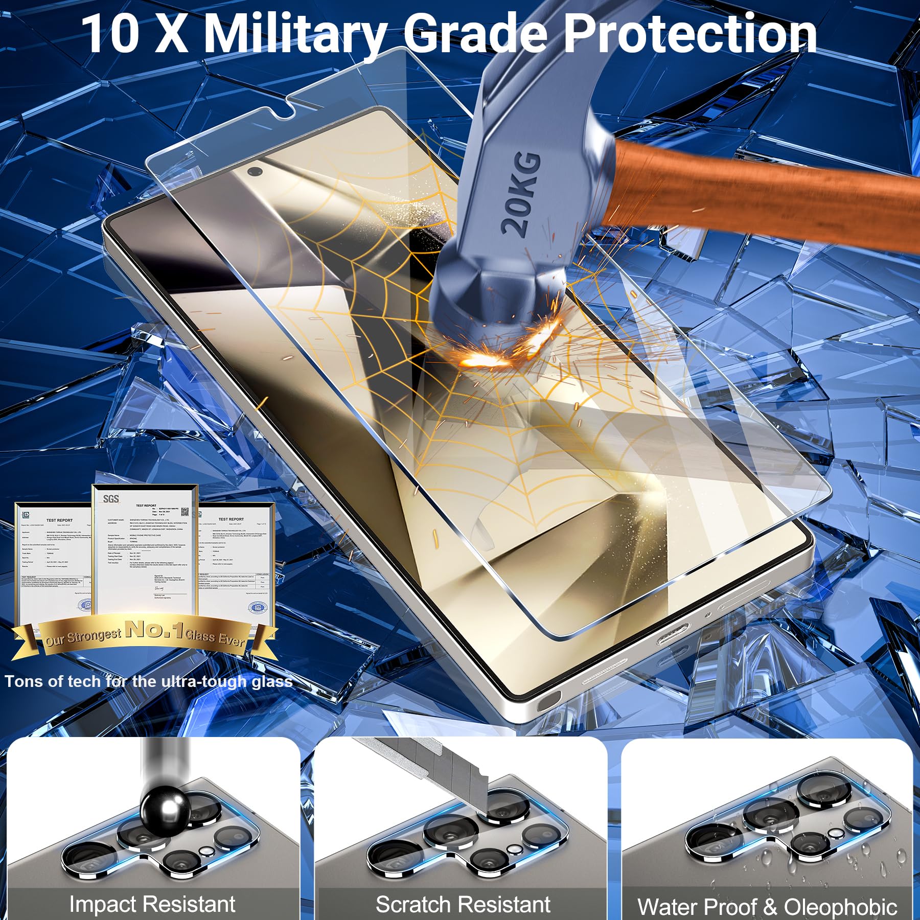 Upgrade 10X Military Shockproof with edge strengthening design, with Ultra-high 9H hardness and 3X Stronger Scratch resistant for maximum resistance against impacts and scratches from objects.Easy Installation and No-Bubble, Removing dust and aligning it properly before actual installation, One-touch ultra-light automatic adsorption installation, no foam at all
