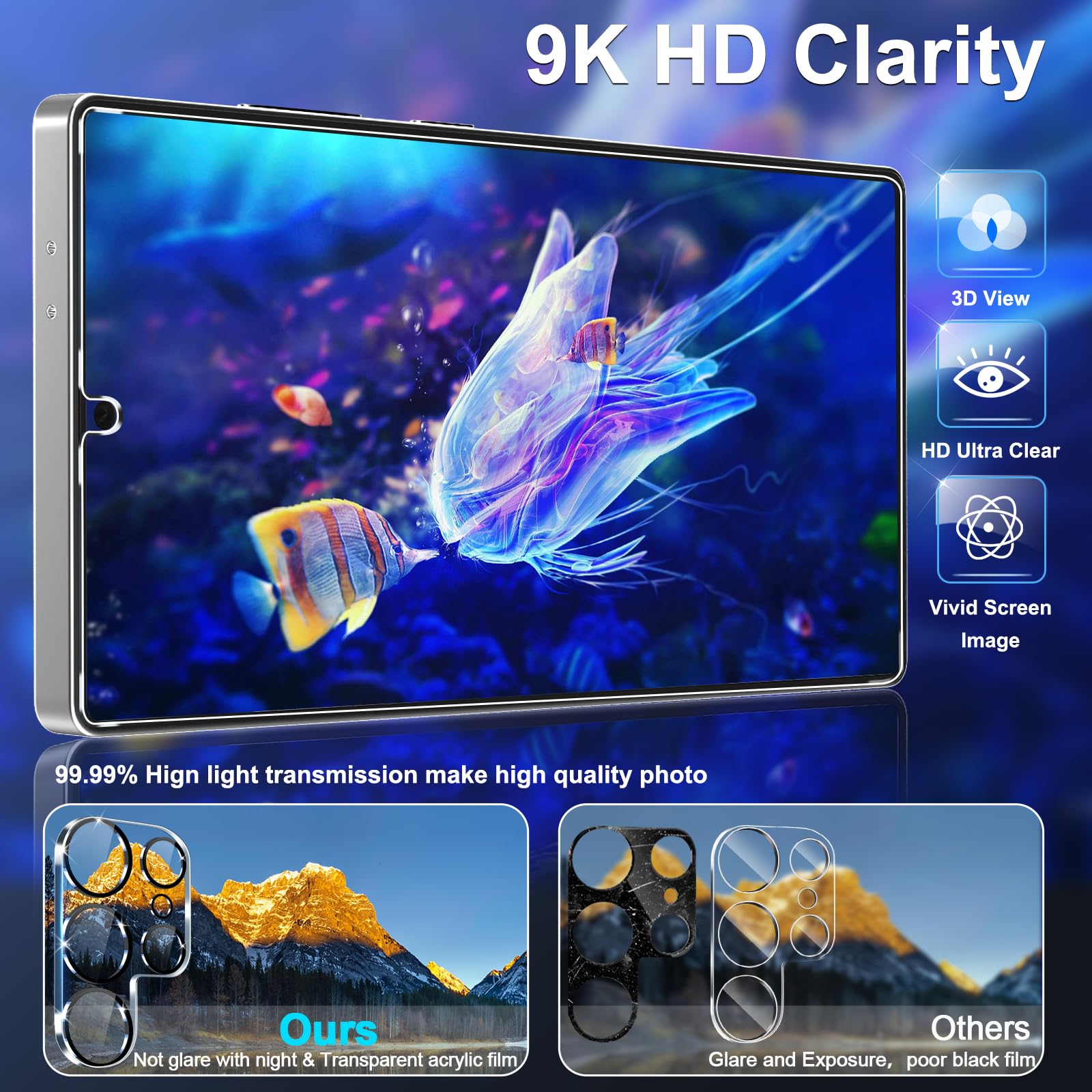 Night shooting made easy: This camera lens protective film is custom designed for the Galaxy S25 Ultra 6.9Inch display. It seamlessly integrates augmented reality technology for improved light transmittance and night shooting capabilities. this protector restores the original quality of photos and videos even when using the flash at night.Transparent lens film keeps your phone and phone photos' original color all the time