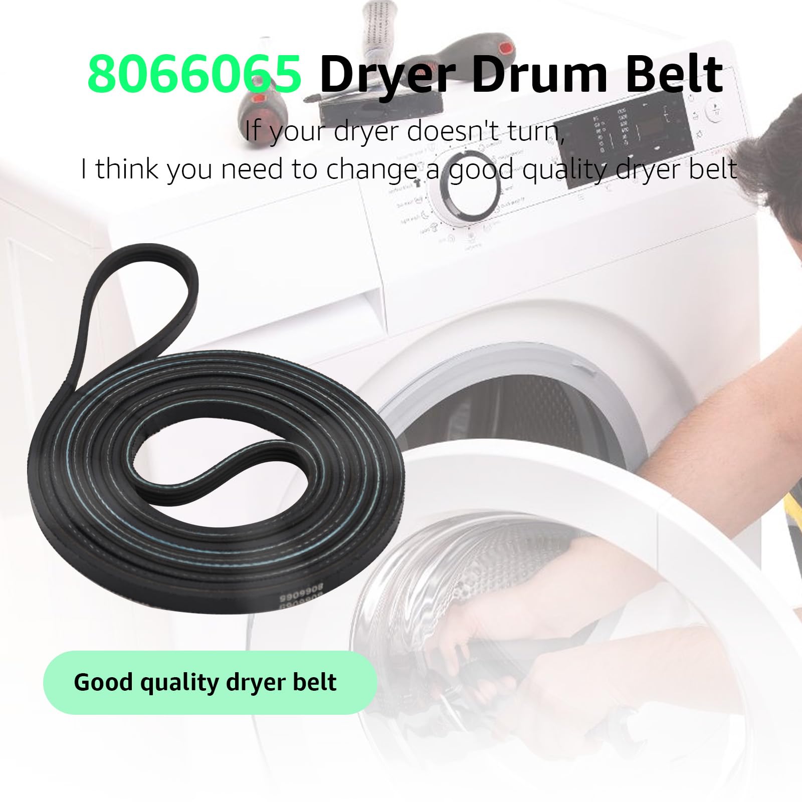 Suggestion:If your dryer stops rolling, cannot start, takes a long time to dry, or makes a lot of noise, your drum belt may break.Please confirm your dryer model and replace it with our belt, so that your dryer can continue to operate normally and intact.