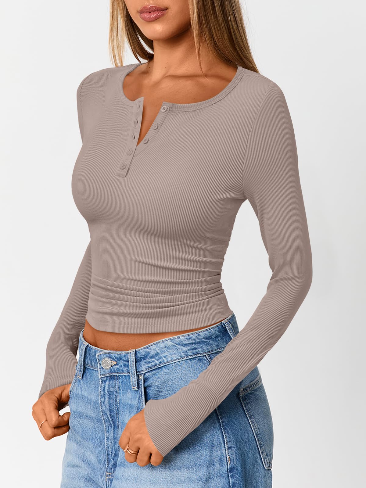 FEATURES: Trendy Queen versatile long sleeve henley top combines exceptional softness with a flattering slim fit. Designed for all-day comfort, it offers great freedom of movement and serves as a perfect year-round layering piece—wear it as a base layer in winter, a standalone top in spring and fall, or paired with shorts on cool summer evenings