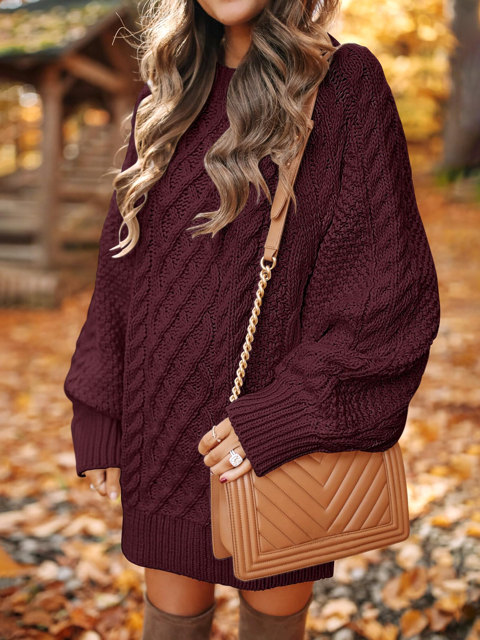 Features - The womens oversized pullover mini sweater dress is designed with long sleeve,crewneck , chunky and loose fit, tunic length , the weave type is cable knit,which is popular and trendy style in fall and winter 2025.
