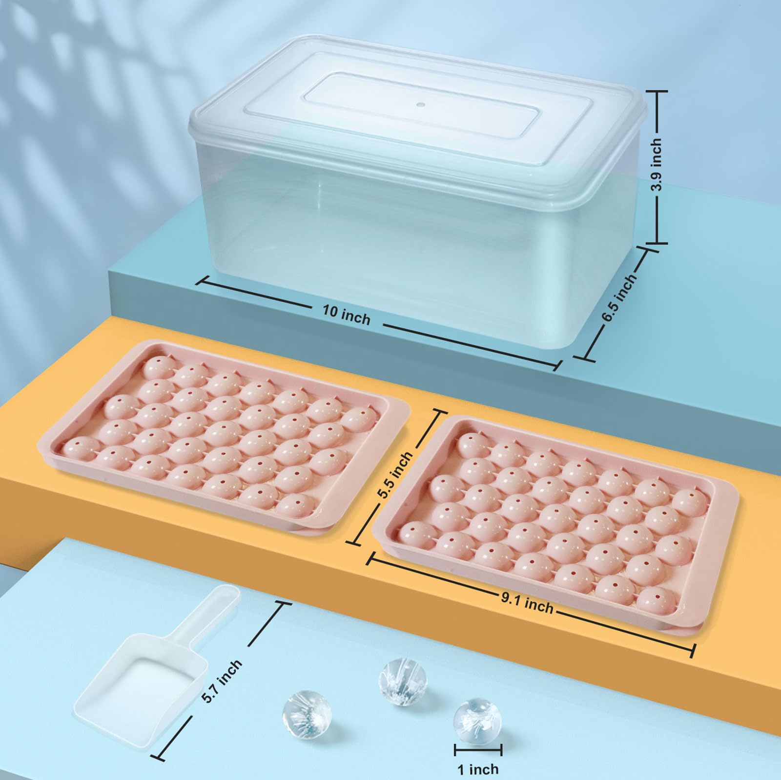Easy to Release: WIBIMEN Ice cube tray with lid and bin is made of durable plastic, making it a breeze to pop out perfectly round ice cubes compared to silicone molds. After taking the mold out of the freezer, give it a gentle twist for instant release