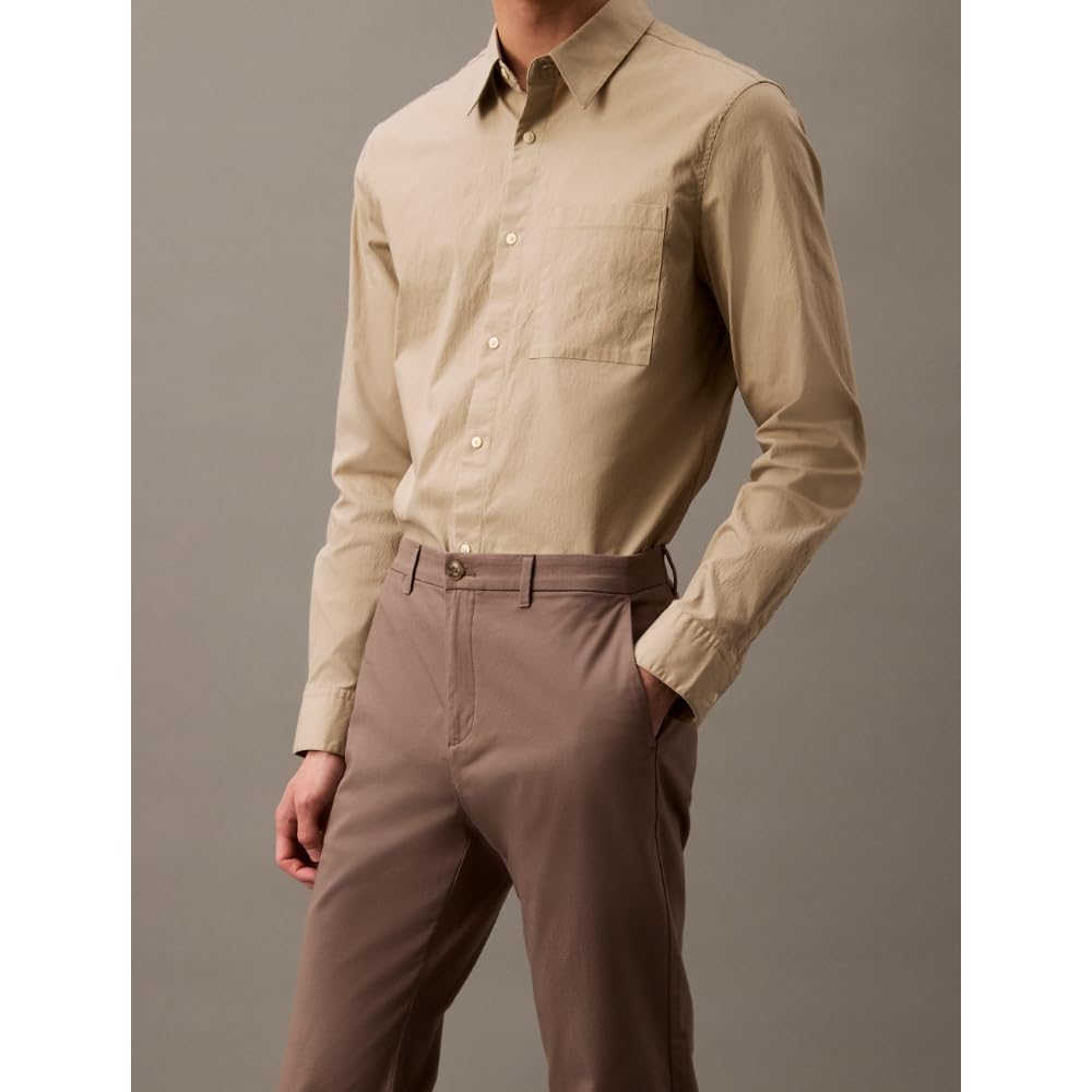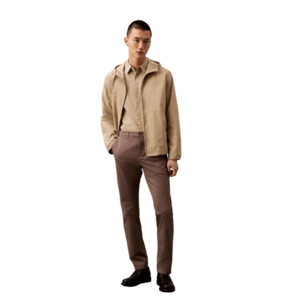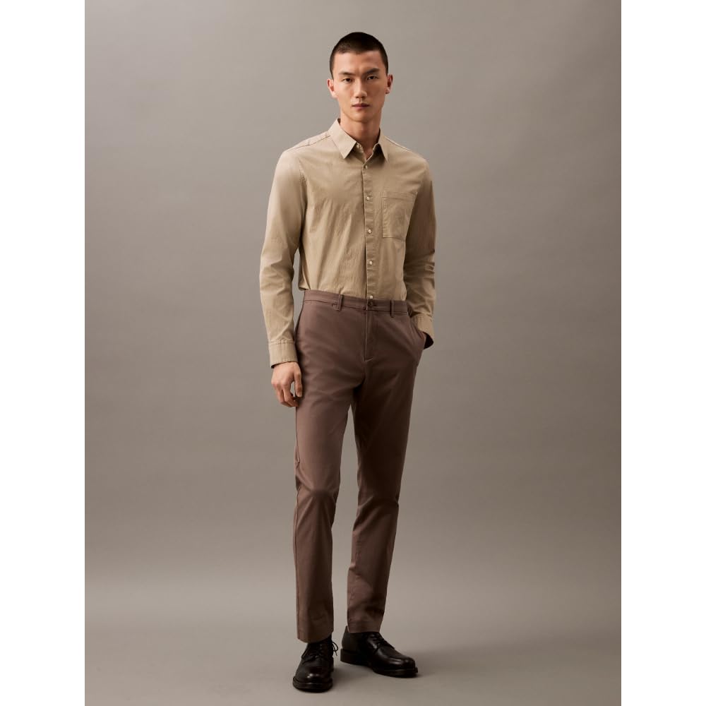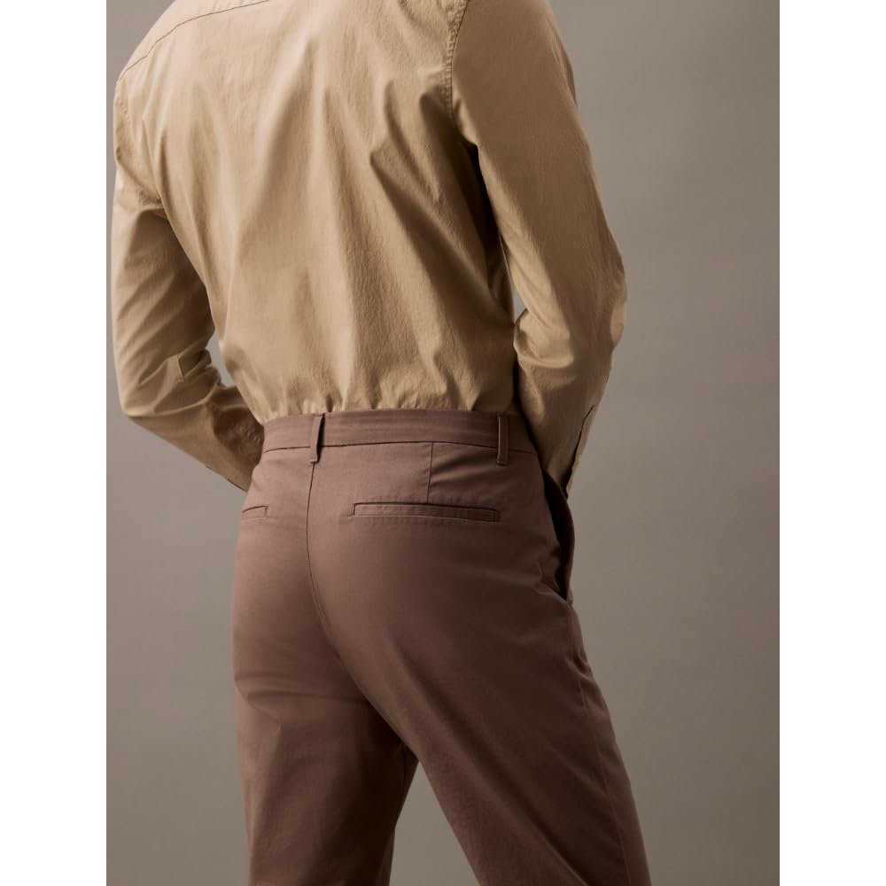 Description Made with a solid design and infinite flex fabric, these Calvin Klein pants feature a slim fit for an easy-to-style look. Designed with front slip pockets, back welt pockets and signature logo detailing.