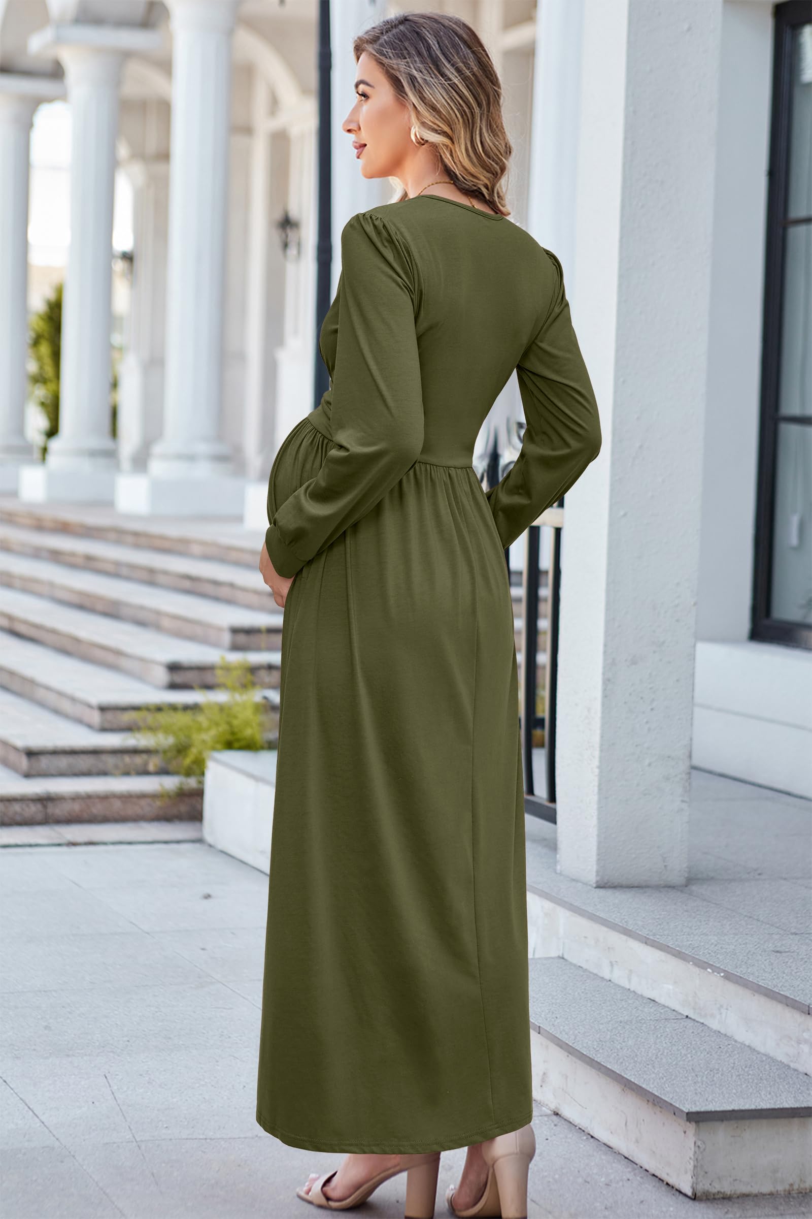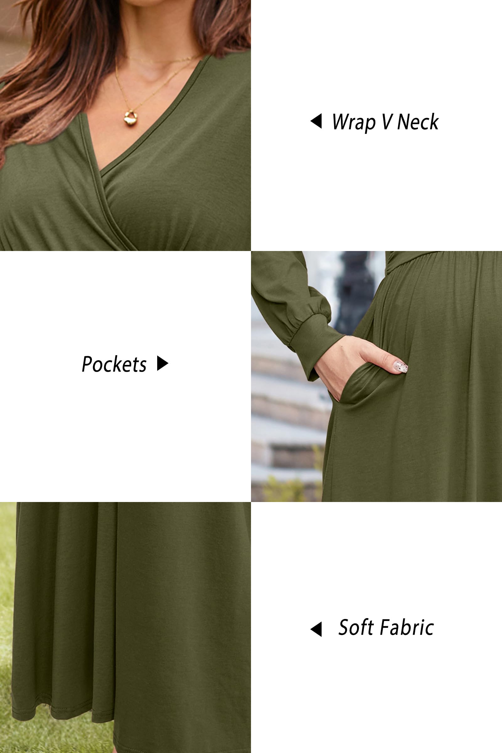 Features: Casual solid color maternity nursing maxi dress features side pockets, empire waist, long sleeve, deep v neckline and smooth look