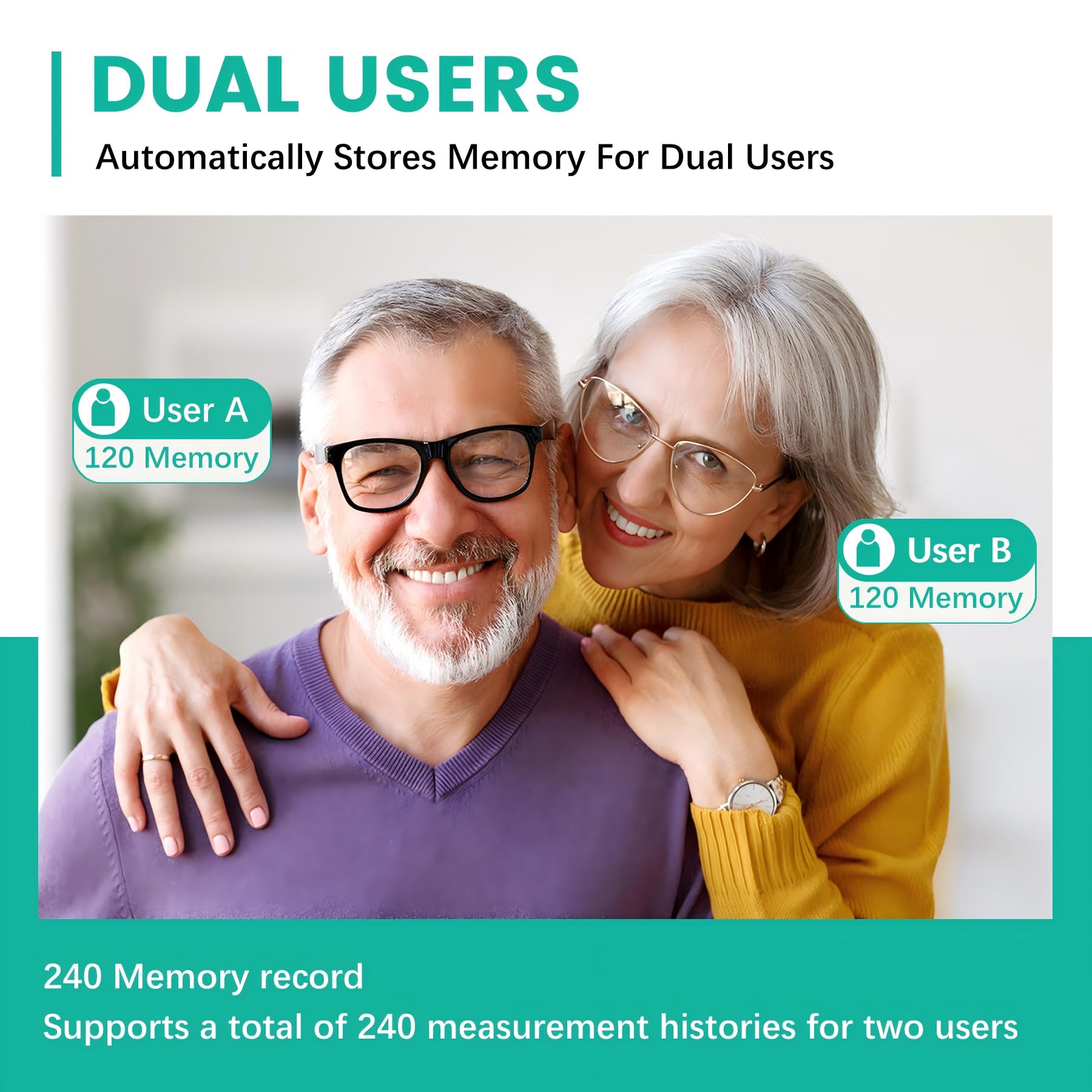 Stores Up to 240 Readings: Supports two users, storing 120 readings per user; this feature makes it easy to track and monitor blood pressure trends for you and your family over time