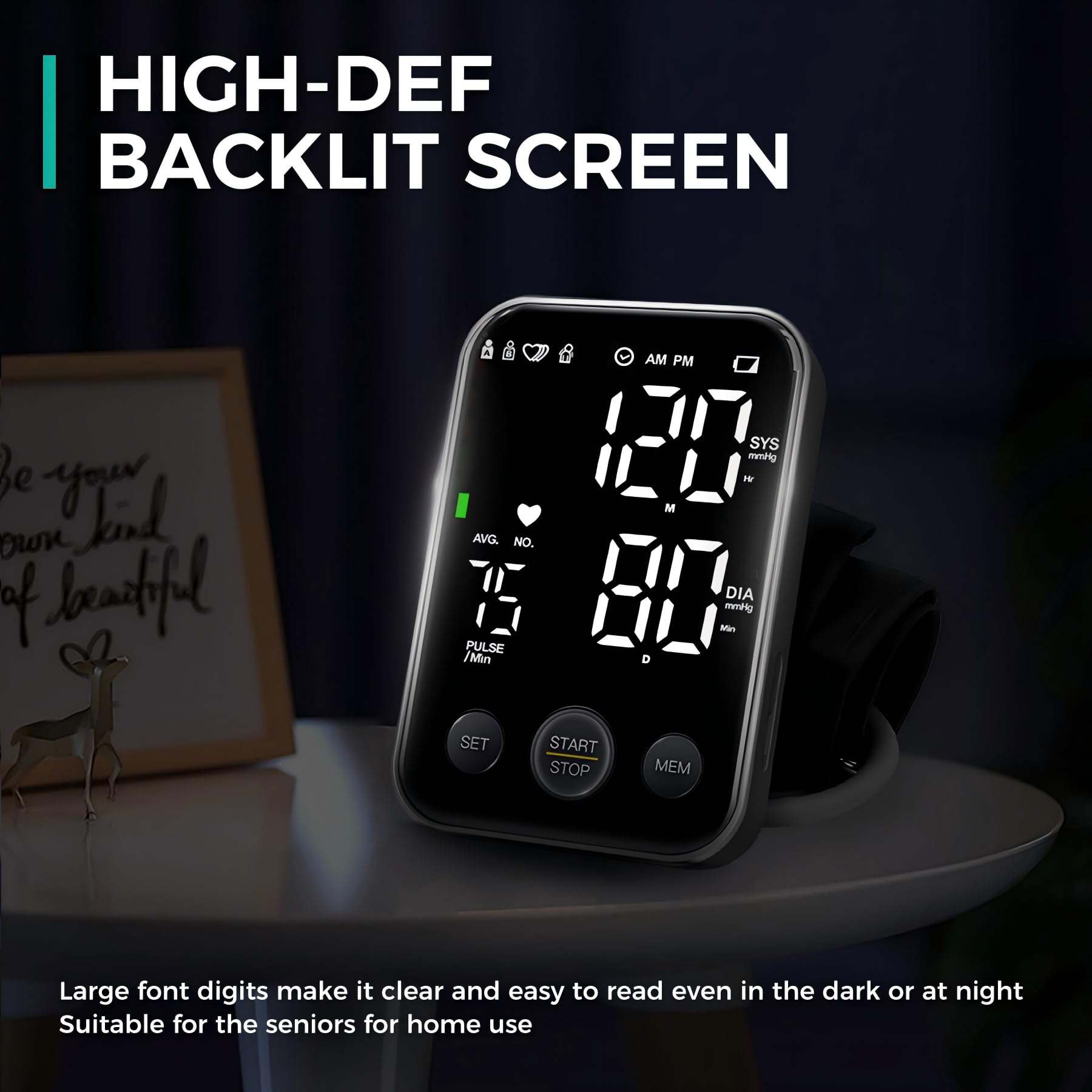 Large LED Display: The backlit LED screen with clear digits makes it easy for anyone to read quickly; you can get readings within 1 minute, and it's user-friendly for the elderly