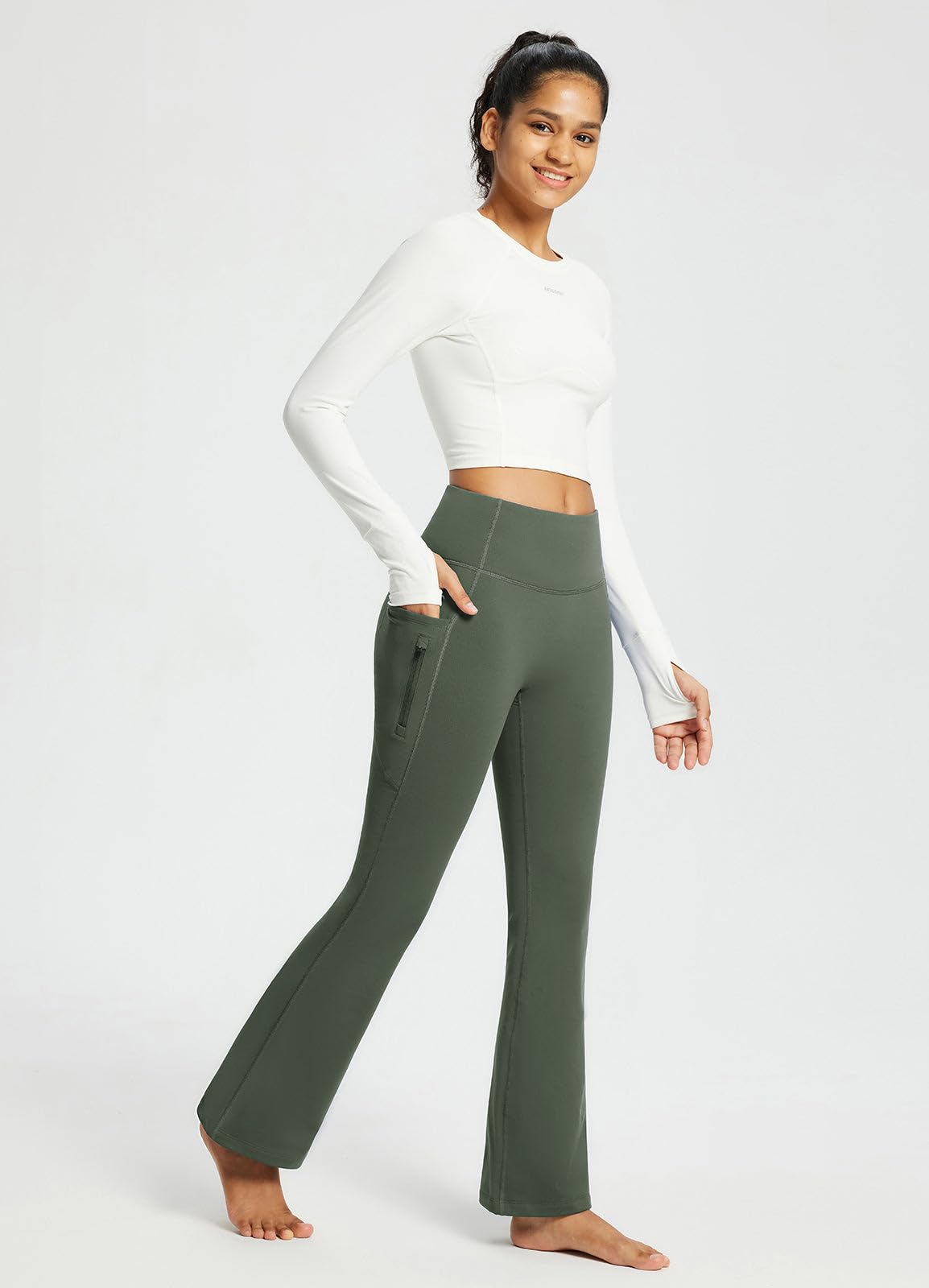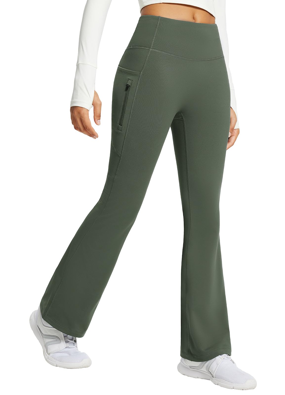 High Waist & Bootcut Design: These yoga pants feature a wide and high-rise waistband, offering gentle compression. Slightly flared pants shape visually slims the silhouette and fits any body type.