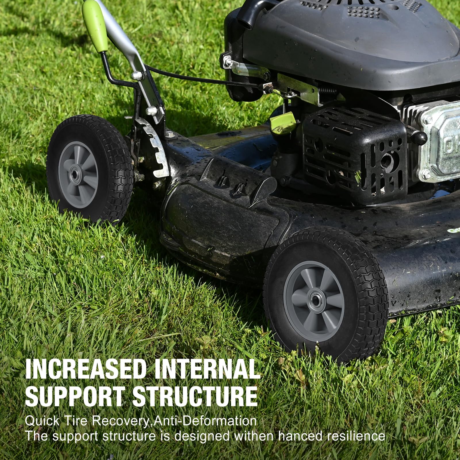 MADE FROM HIGH-QUALITY MATERIALS: It all begins with high-quality materials. Thanks to the added internal support component, these solid PU tires won't go flat and are difficult to recover from prolonged use. They are also less prone to developing annoying flat spots on bumpy terrain. They bounce right back!
