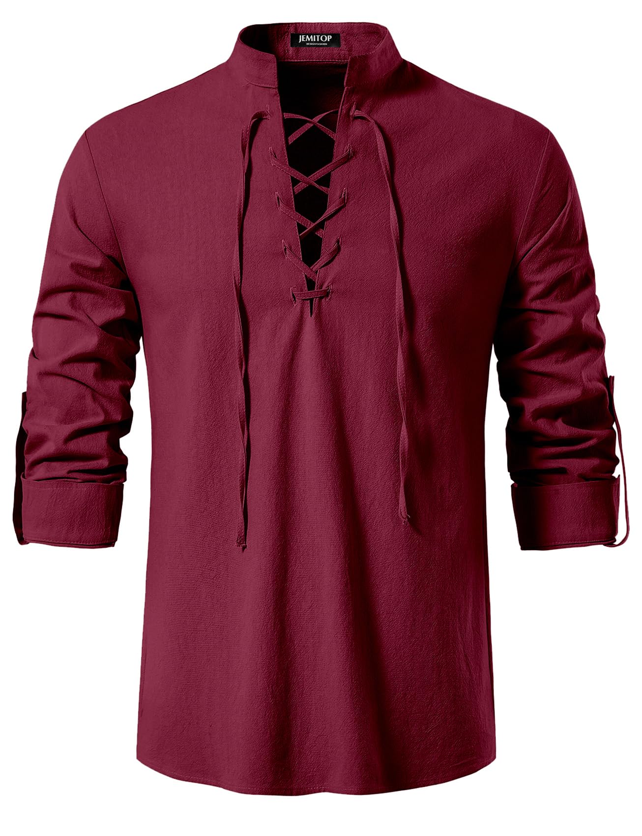Design Concept: Cosplay costume for renaissance,pirate,viking,medieval,halloween / Retro drawstring shirt / Regular fit / Mandarin collar / Long sleeve / Rolled sleeve