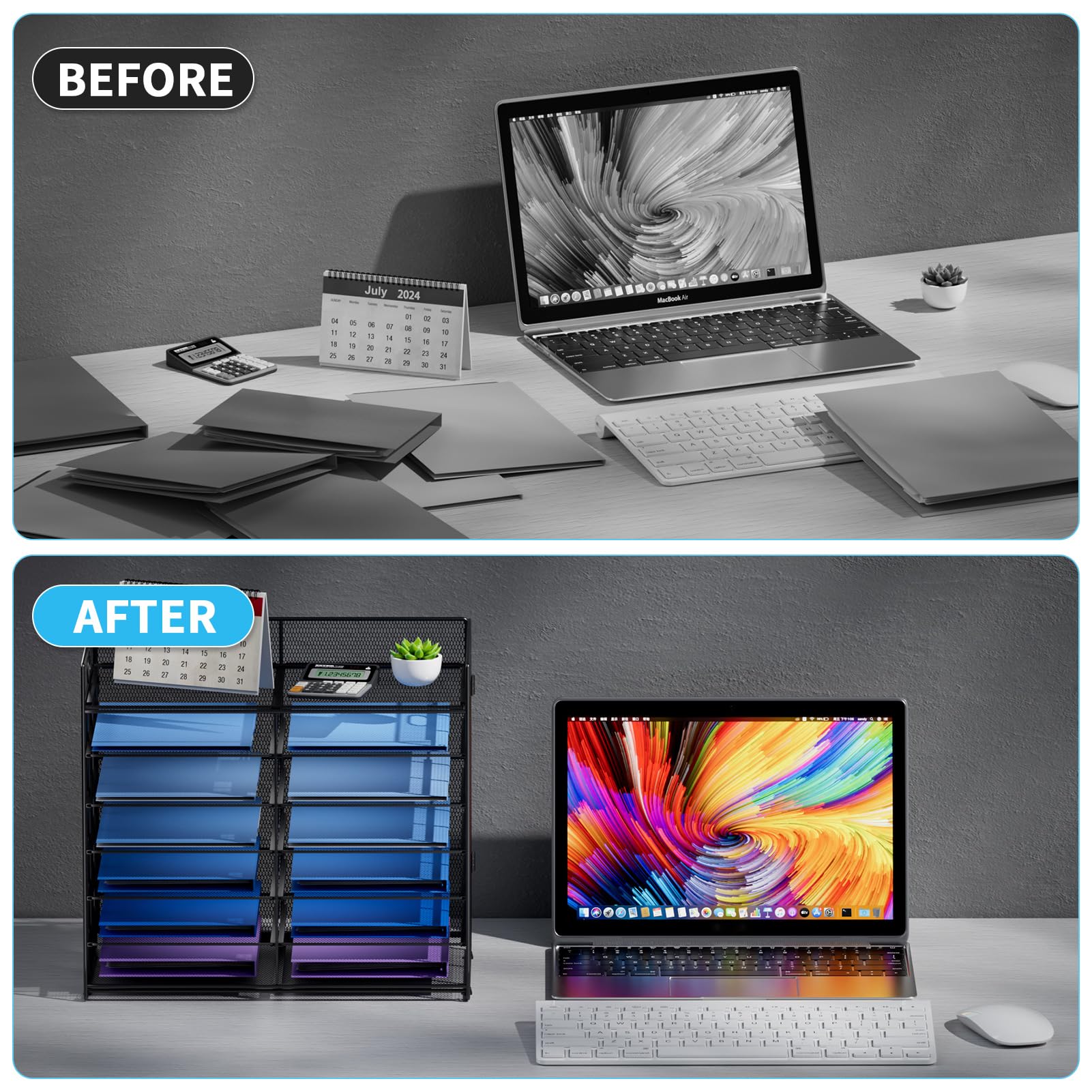 【Extra Large Capacity】Amazing storage capacity and space-saving design. With a total of 13 compartments, it helps you quickly and easily sort, store and organizer literature, magazines, comic books, files, student work, binders, catalogs, diaries, documents and files on your desk or counter, giving you back valuable workspace.