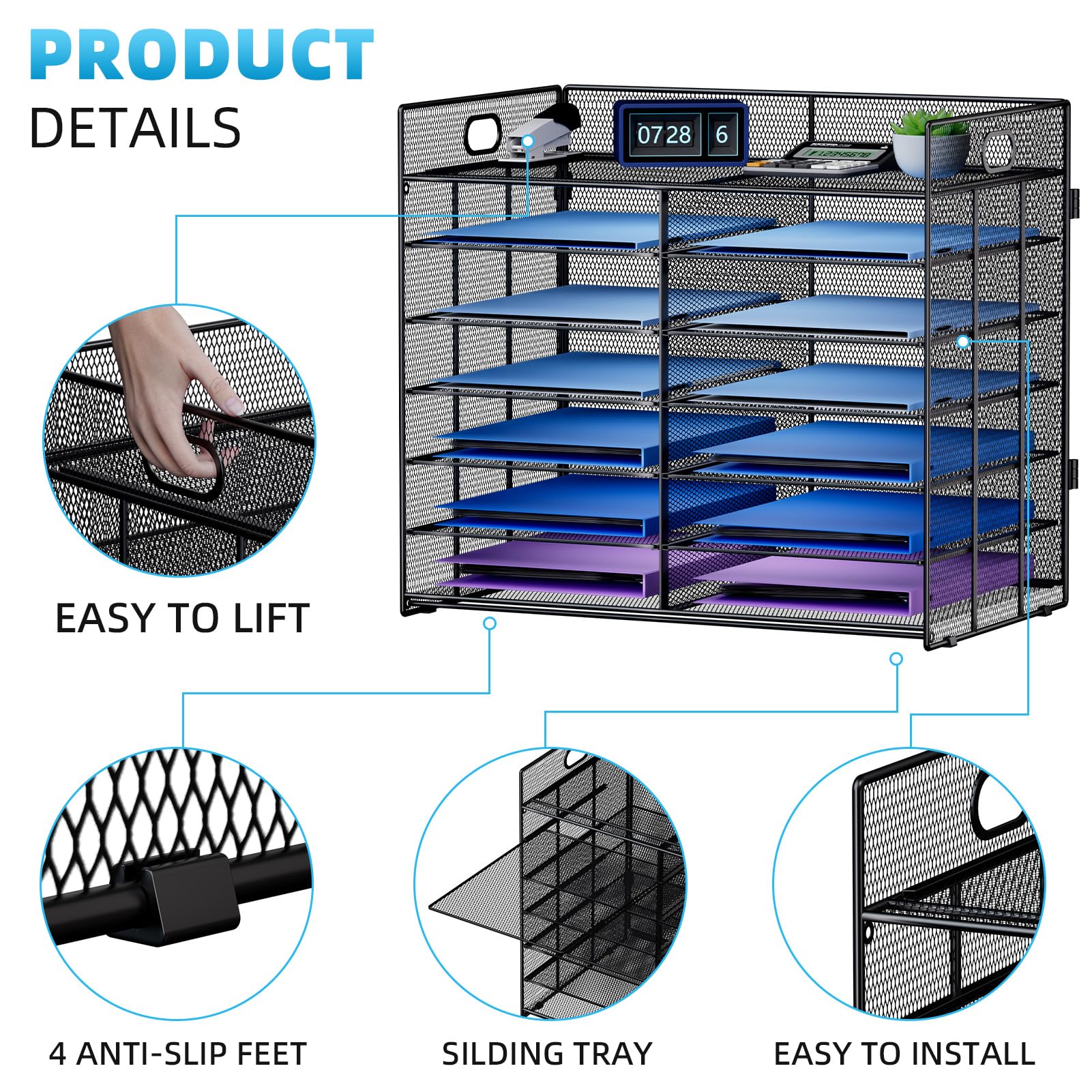 【New Upgrade Design】Unique PORTABLE HANDLE design which makes the paper sorter organizer very convenient to move and place where you need it.