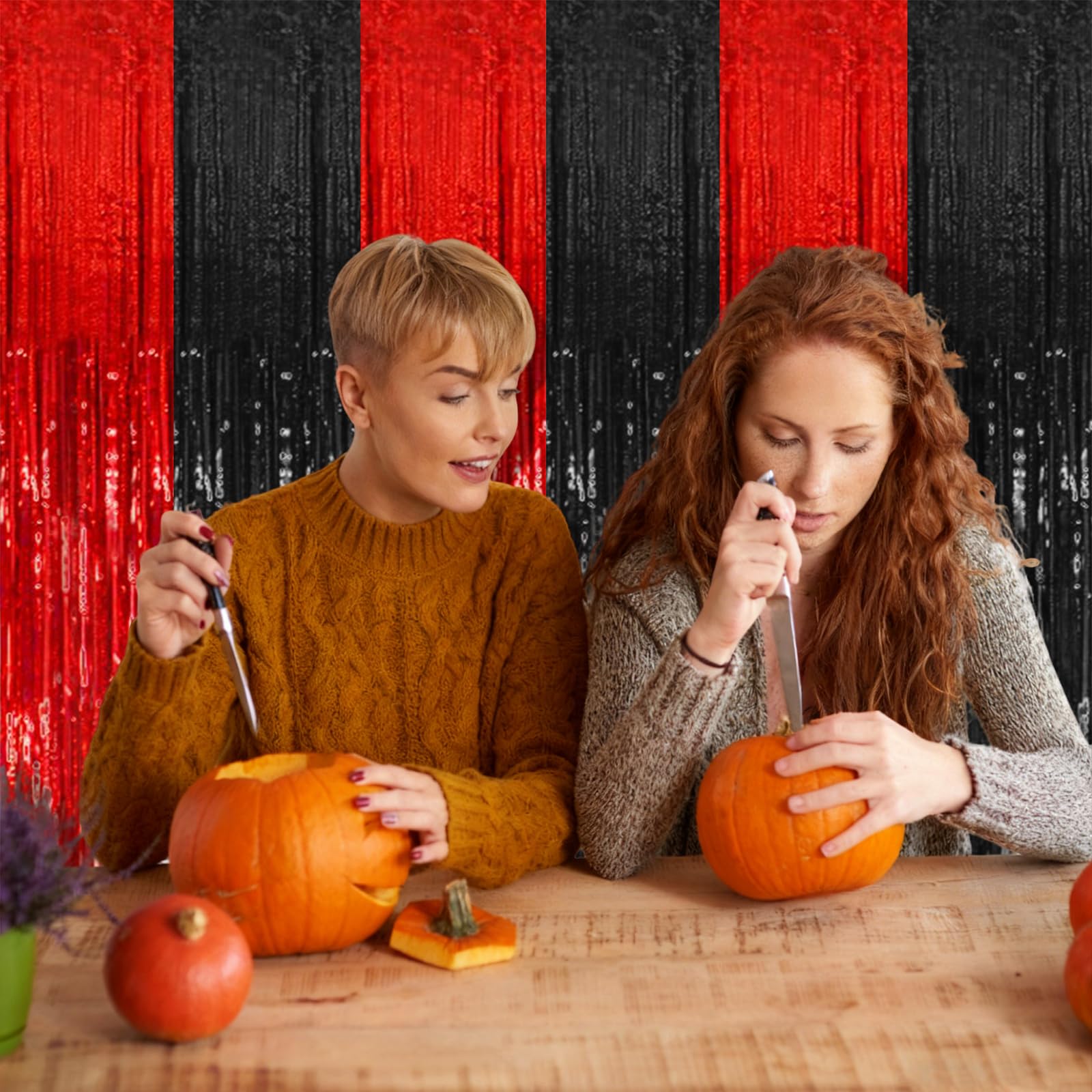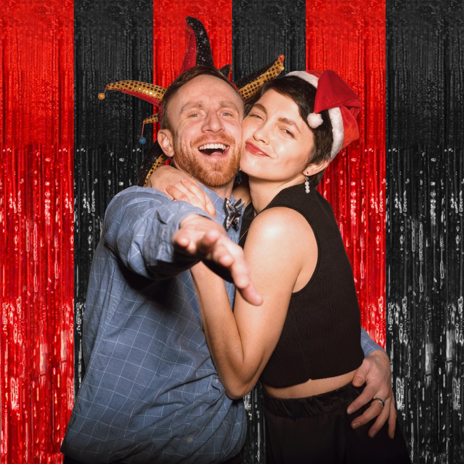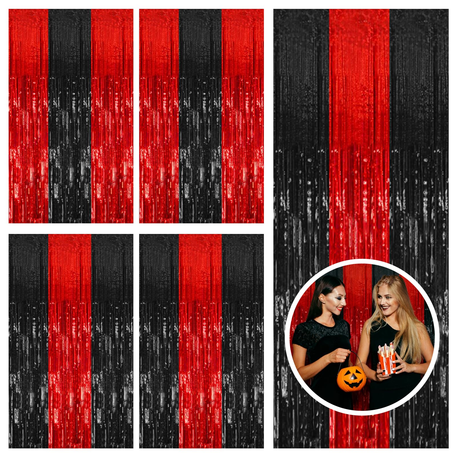 5 Pack Black and Red Backdrop Party Decorations Tinsel Curtain Halloween Party Streamer Foil Fringe Birthday Decorations Photo Booth Fancy Ball Christmas New Year Graduation Party Decor Decor