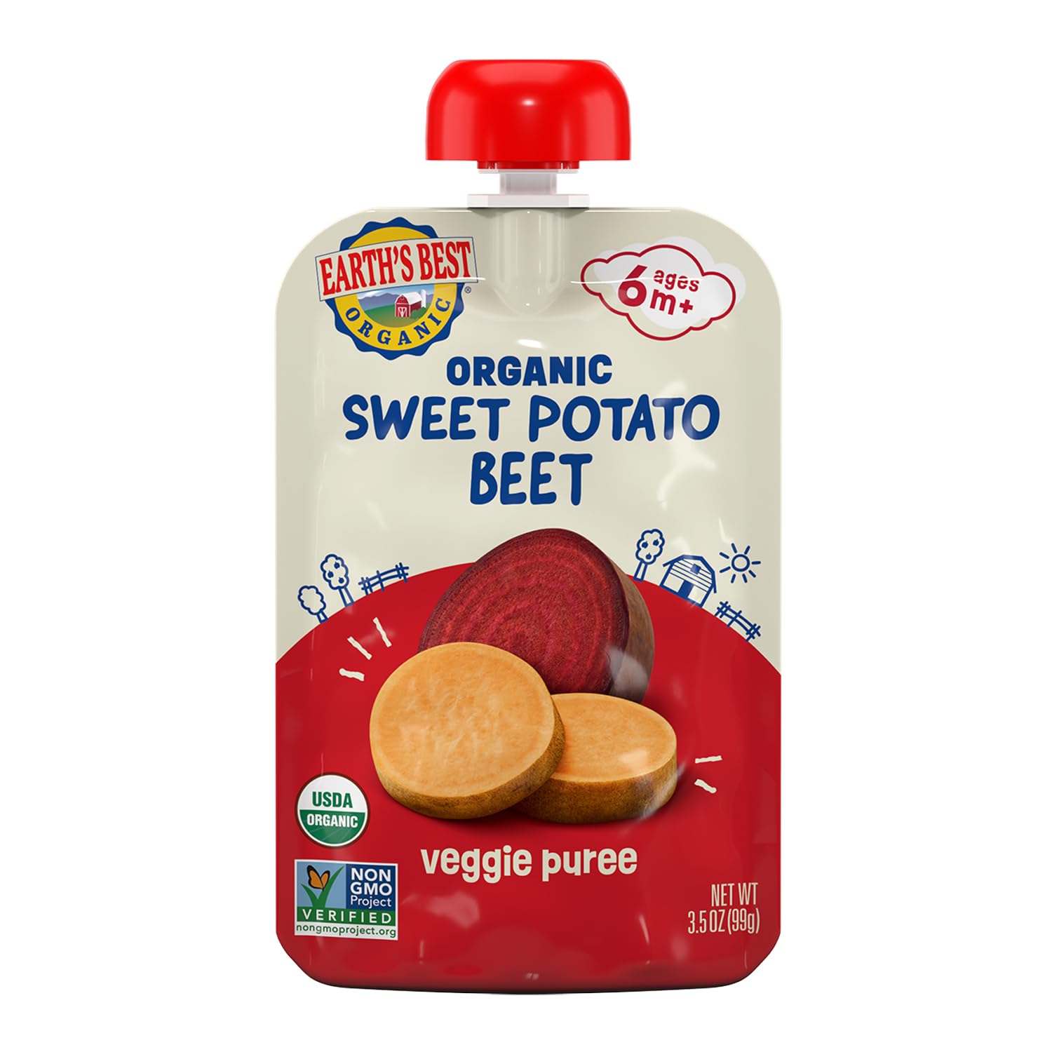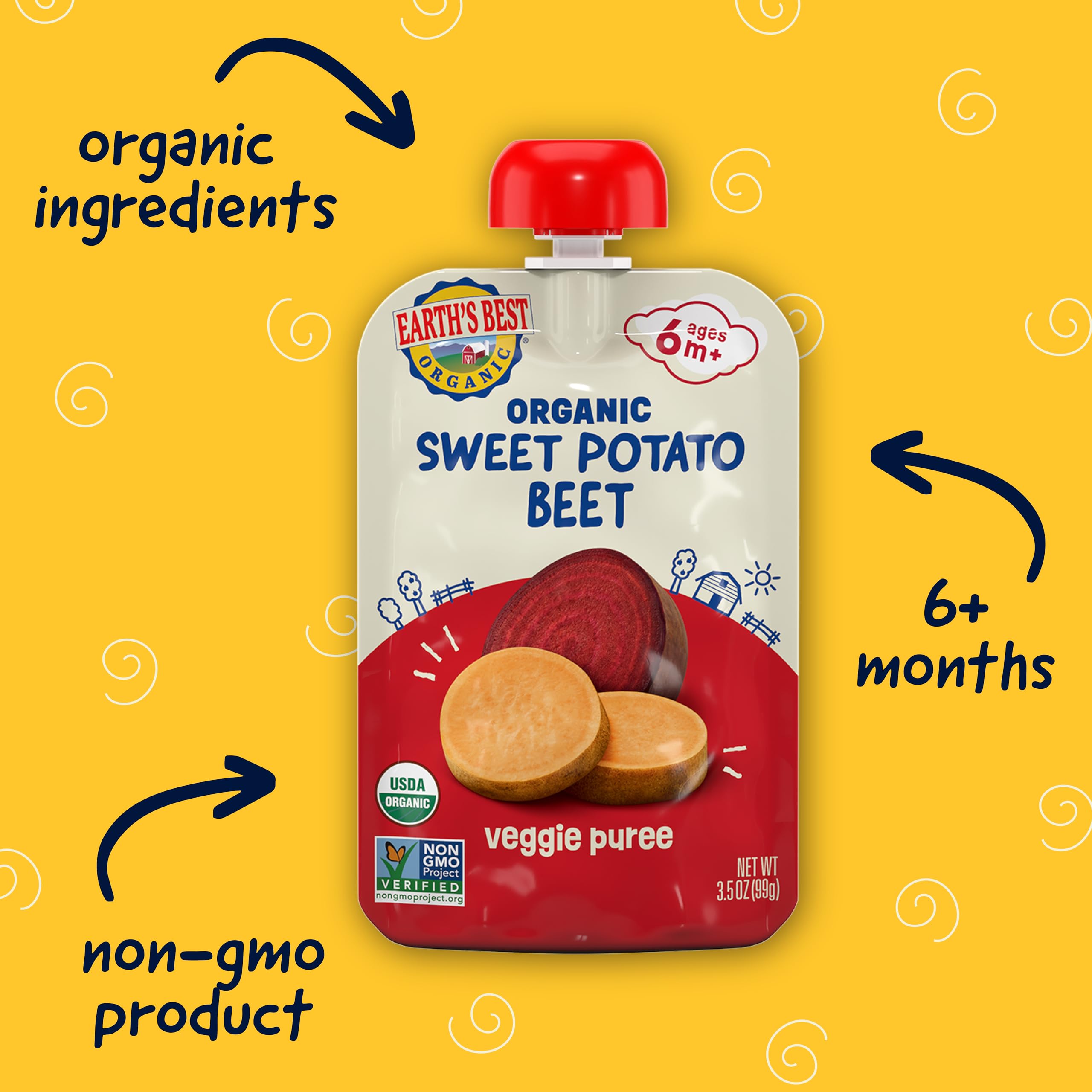 ORGANIC SWEET POTATO AND BEETS PUREE POUCH: Includes twelve 3.5 oz pouches of Earth's Best Organic Vegetable Puree