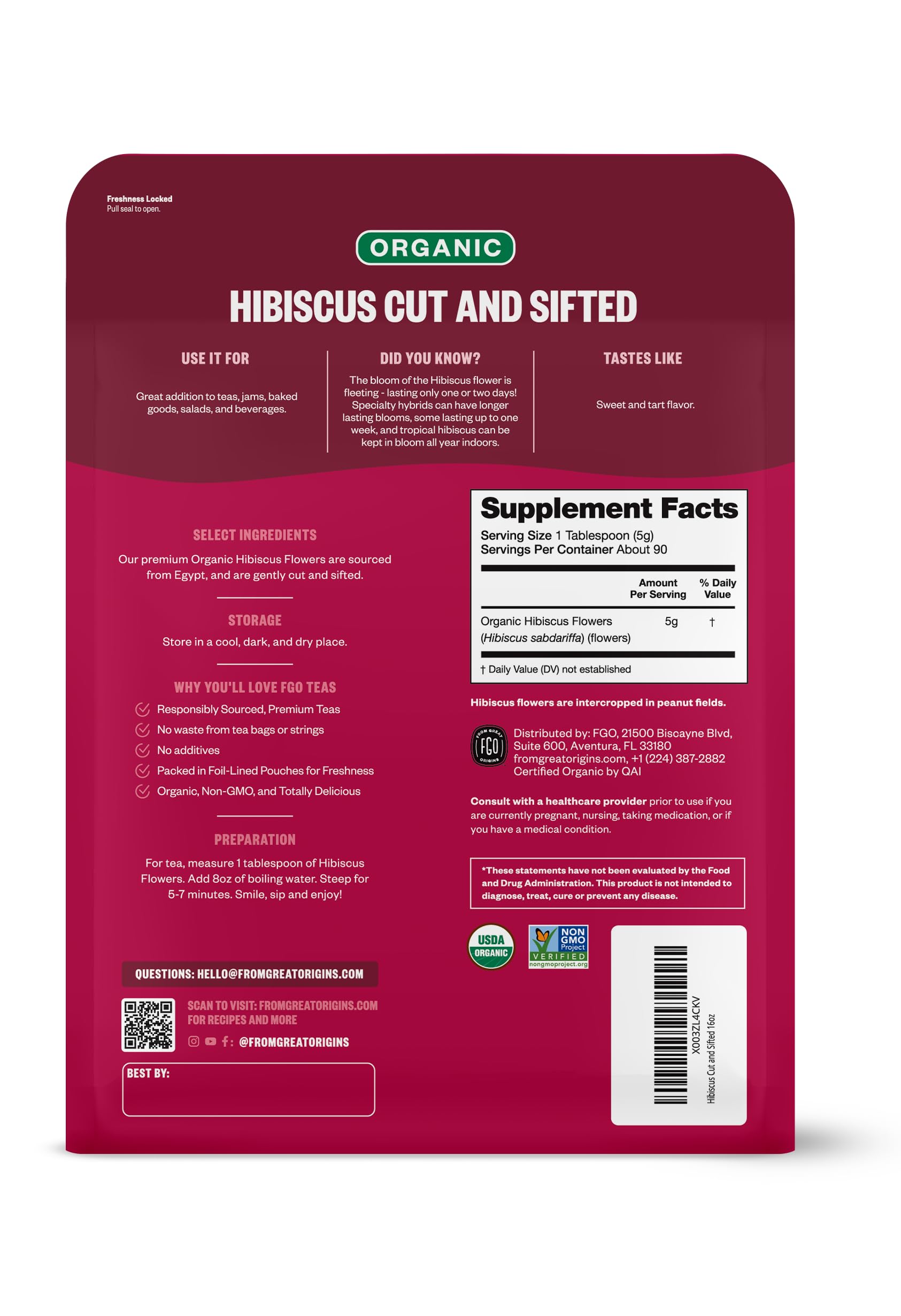 IMPORTED FROM EGYPT - This bag contains certified organic, cut and sifted hibiscus flowers from Egypt.