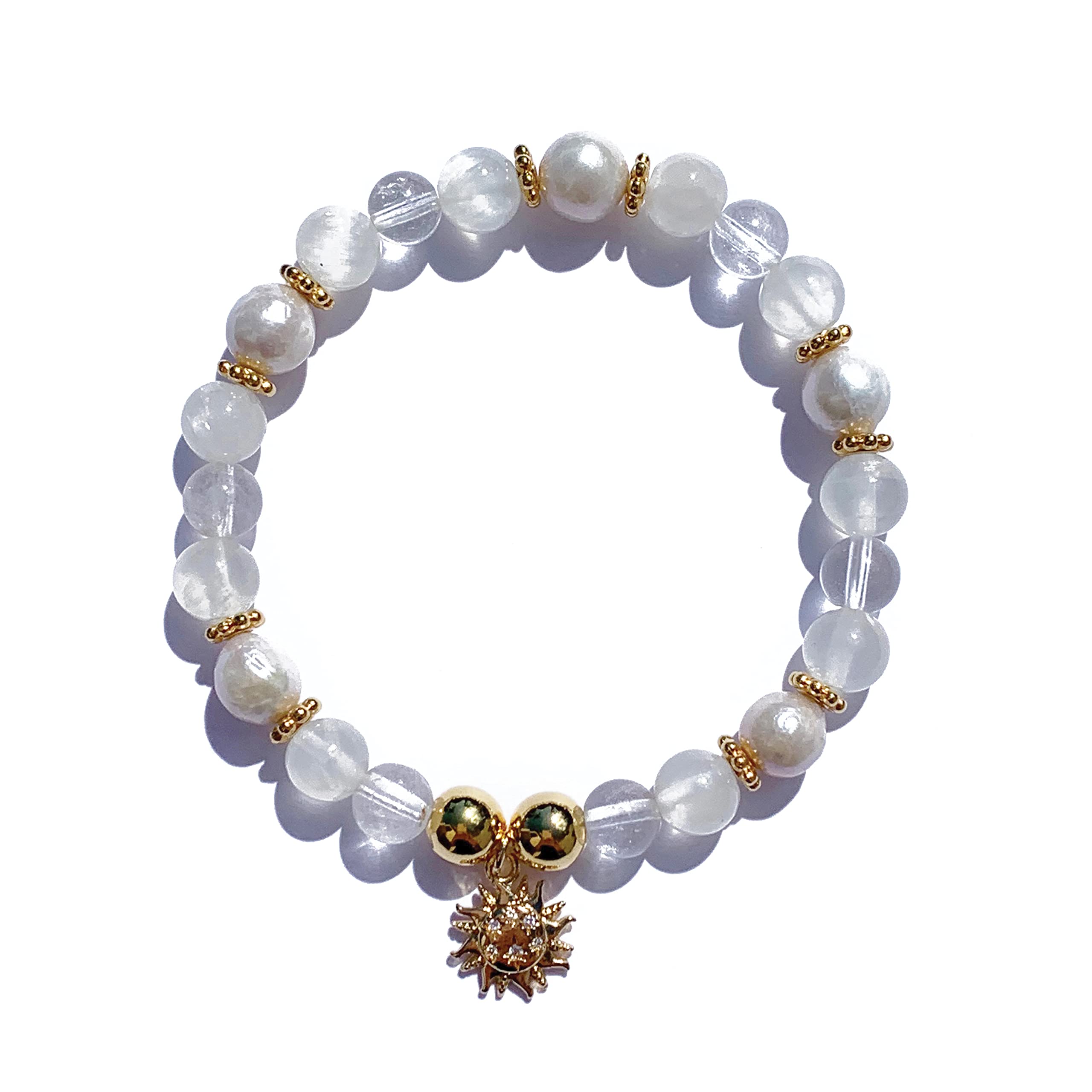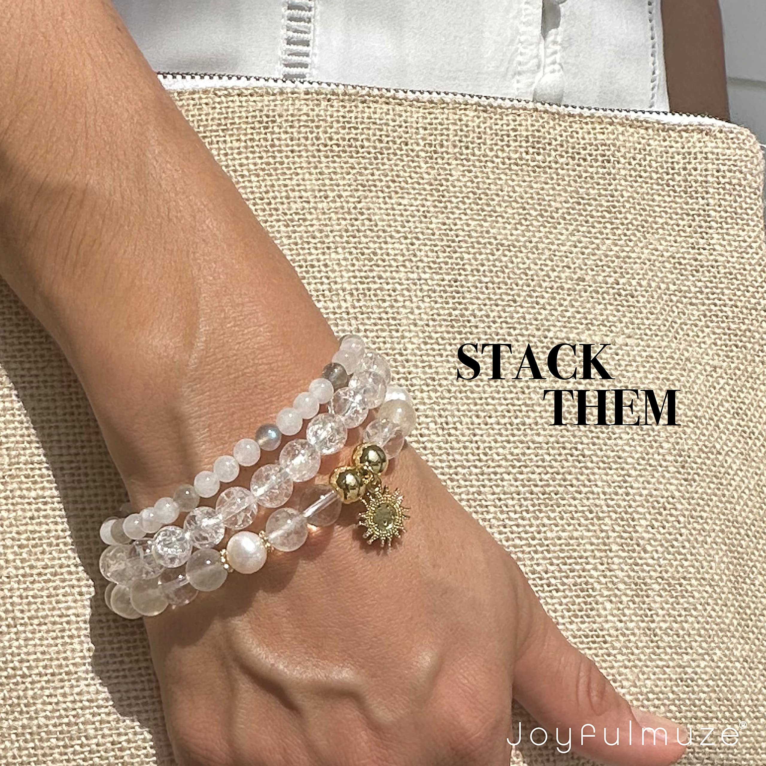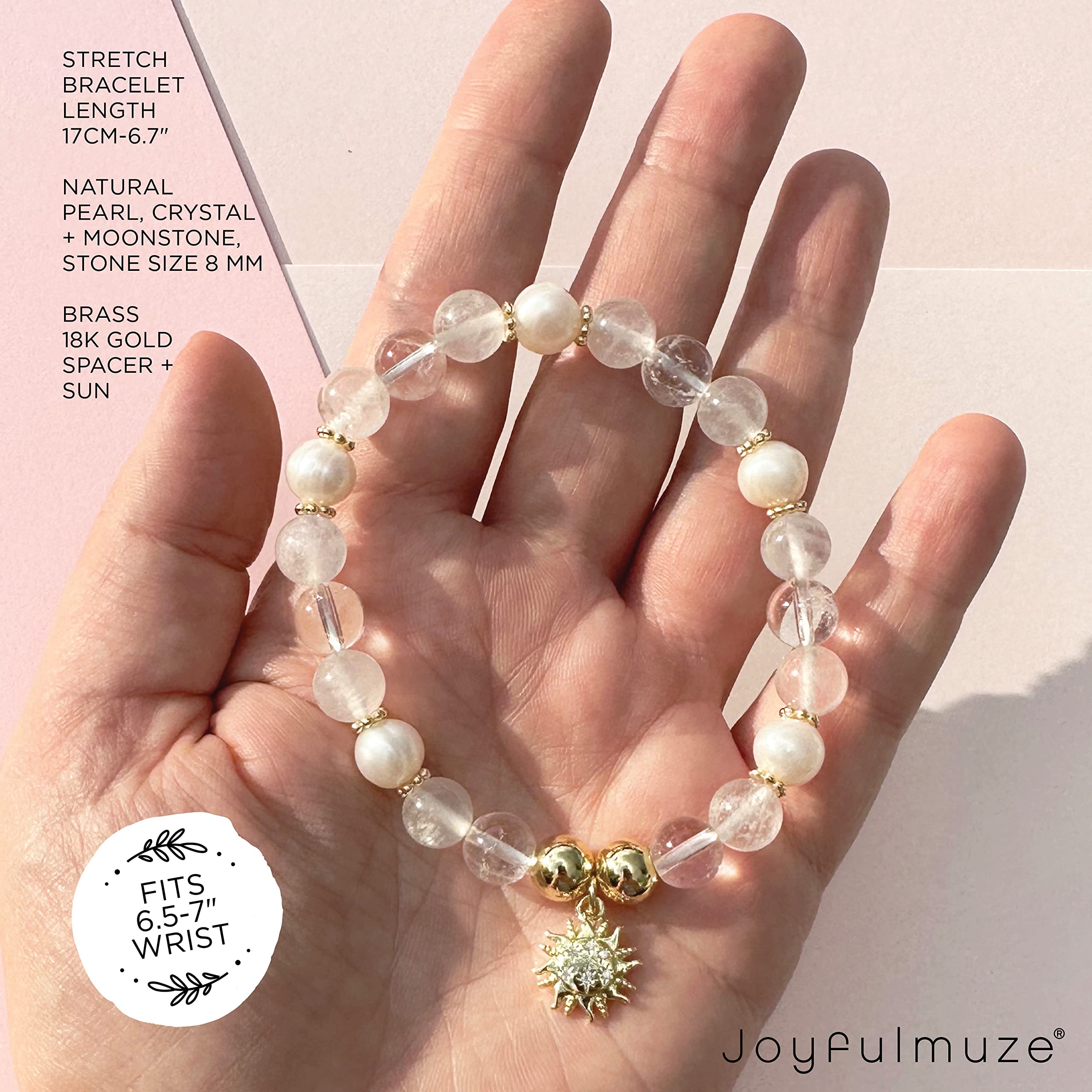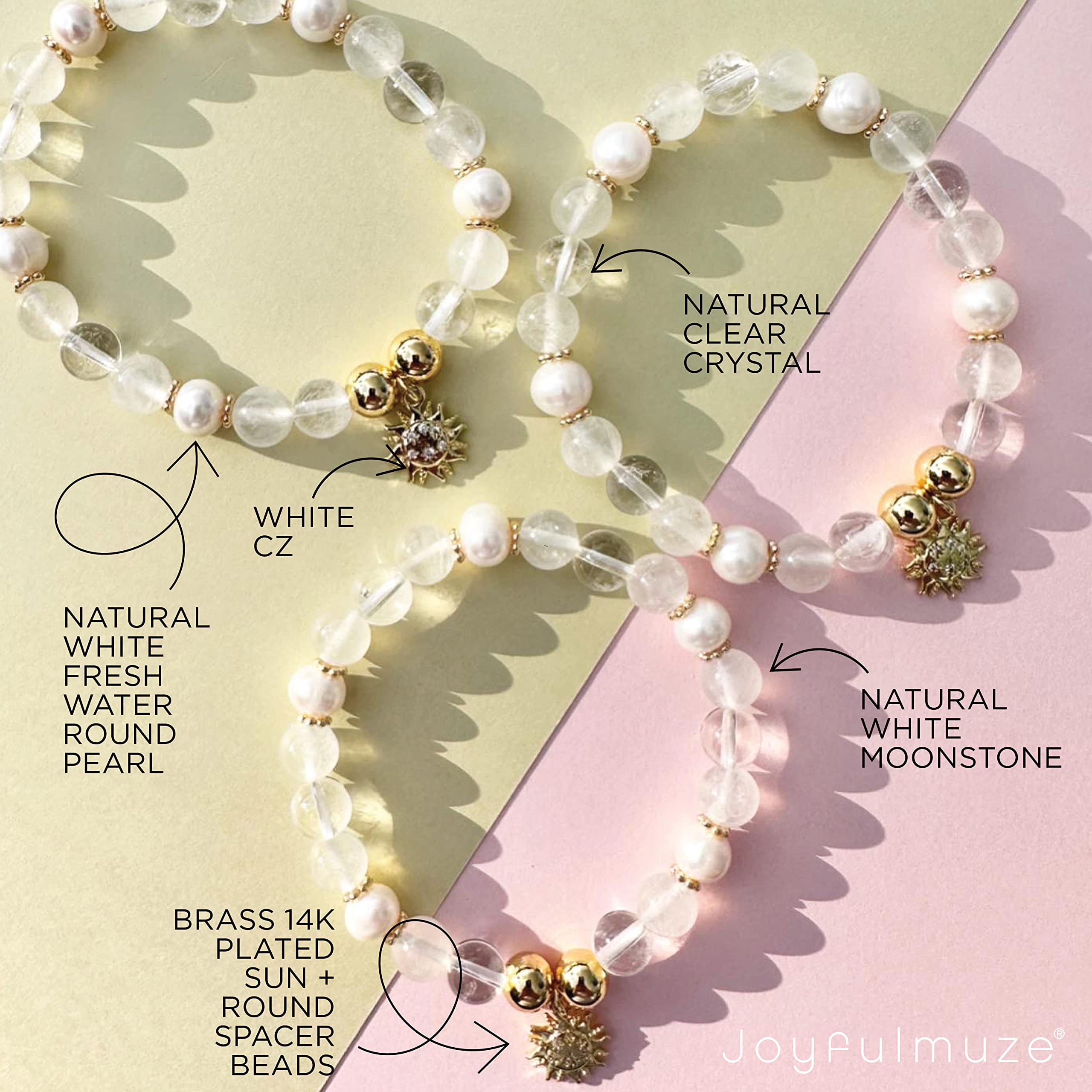 Description Discover the artistry of Joyfulmuze in Florida, USA, where each piece is meticulously handcrafted with authentic, high-quality materials. Our moonstone, burst crystal, and white freshwater pearls are ethically sourced from Fair Trade suppliers, ensuring you not only love the aesthetics of your white and gold bracelet but also appreciate its ethical creation. Navigating the Energy Flow: Wondering which wrist to grace with your crystal bracelet? Adorn your left wrist to connect with the outer world's energy, aiding in internal transformations. Opt for the right wrist for balanced movement support. Size Matters: Delight in the intricacies of our creations, but be sure to check the actual sizes in the listing, as images are often enlarged for detail. Embrace the uniqueness of moonstone and labradorite gemstones, where variations in color and pattern are inherent and add to their natural charm.