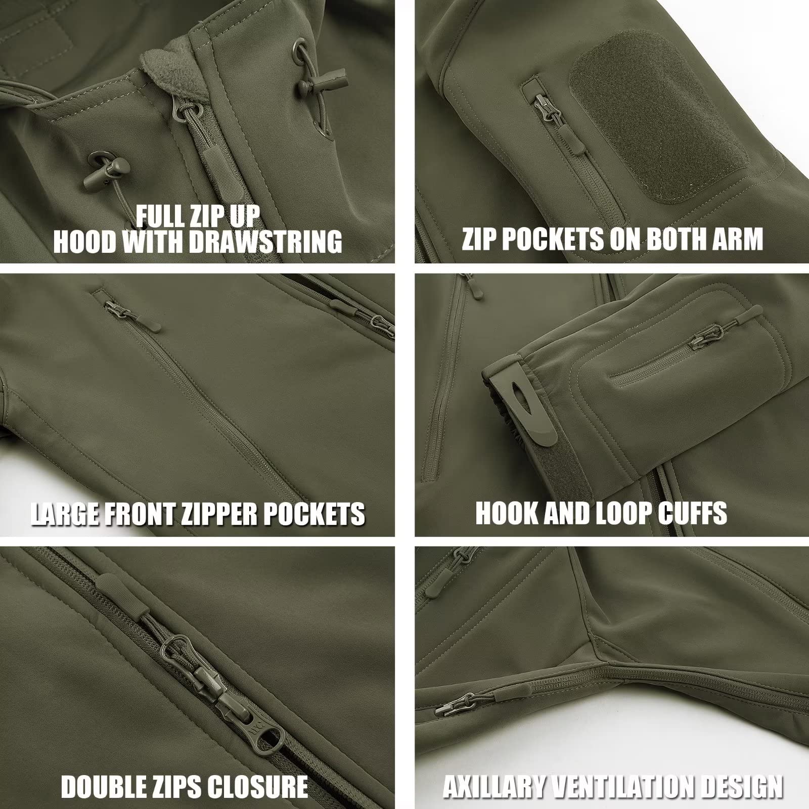 The softshell fabric with warm inner micro fleece. The outer layer features waterproof and windproof, while the inner layer keeps you warm all day.