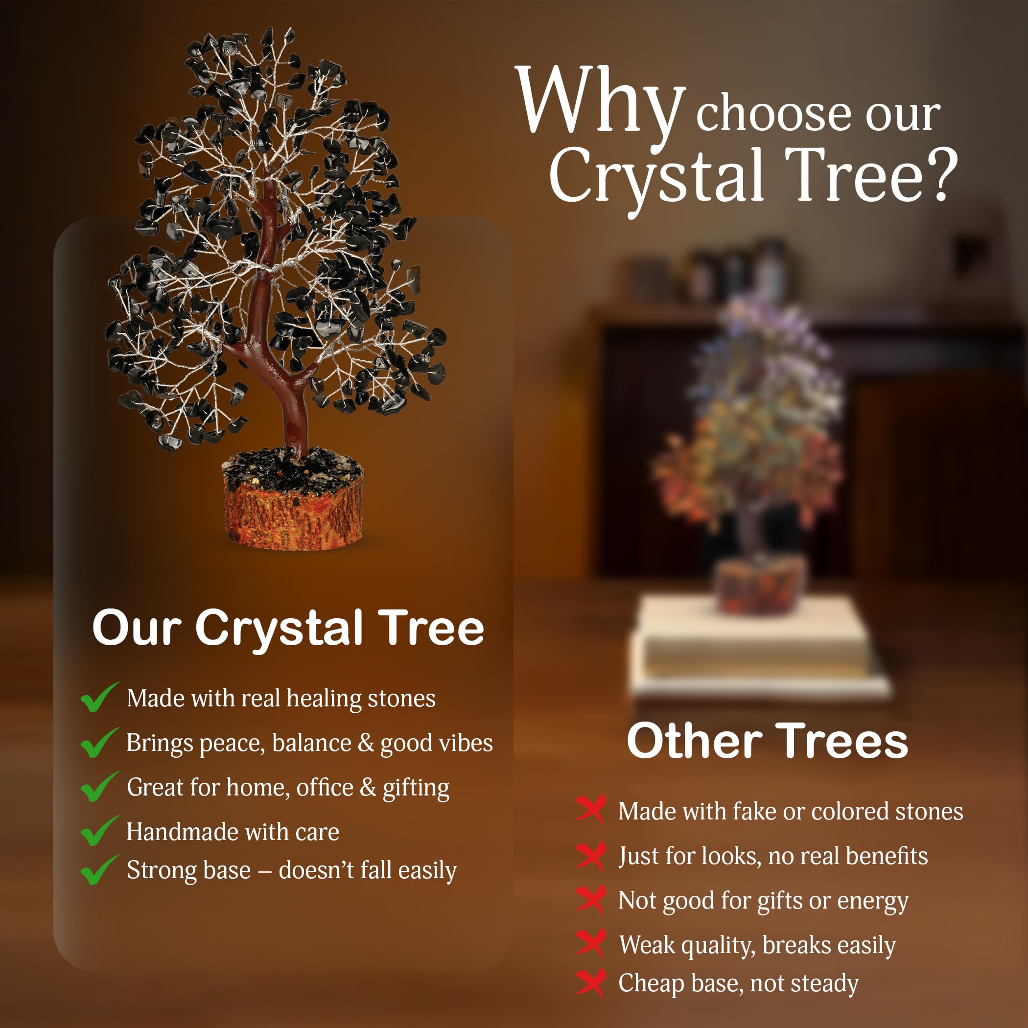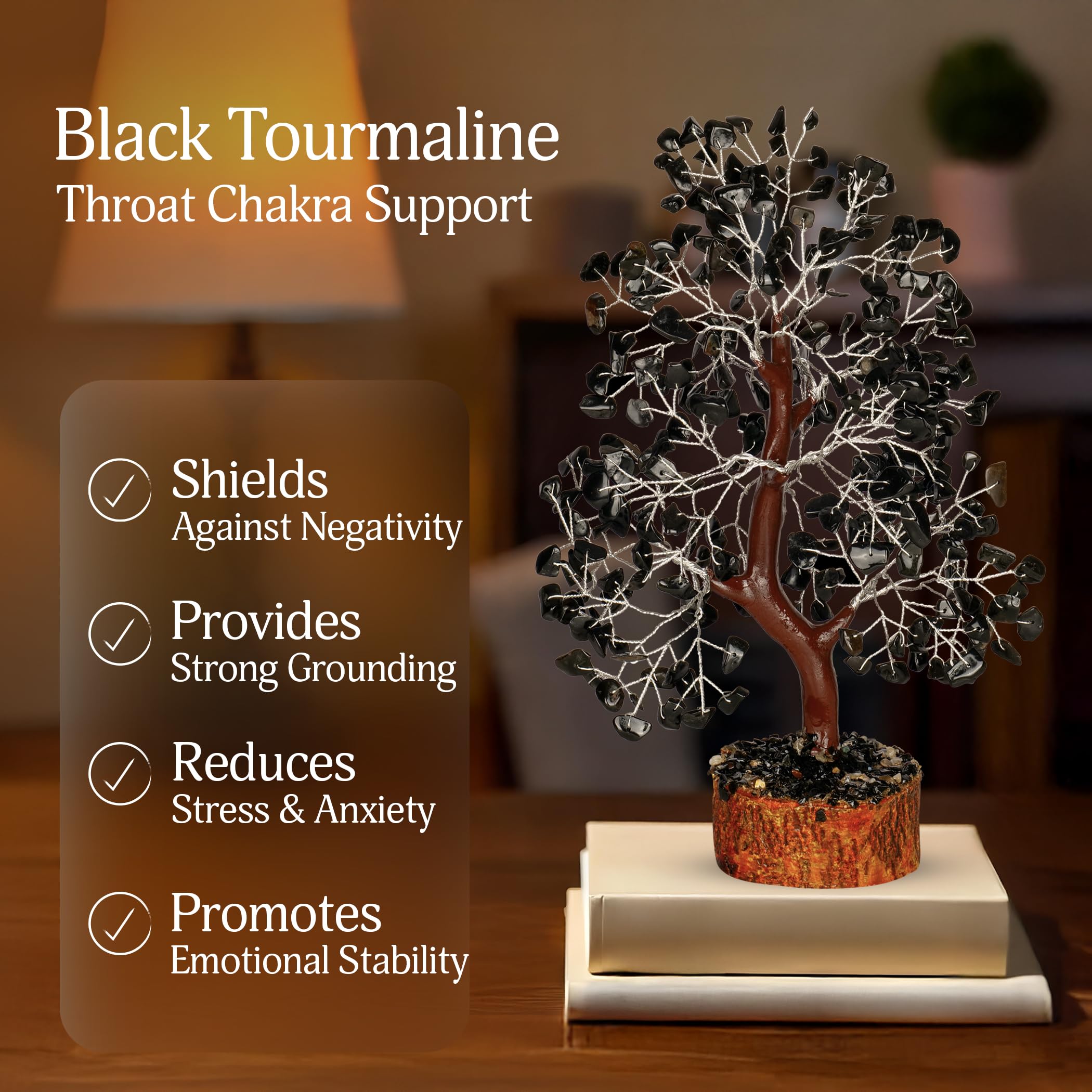 Feng Shui Properties - Black tourmaline crystal divine tree in feng shui is known for its healing and grounding properties. The buddha prosperity tree is recommended to place on the right side of the living space to heal love. For wisdom and knowledge, it is recommended to place the buddha tree in the left direction of your office or home.