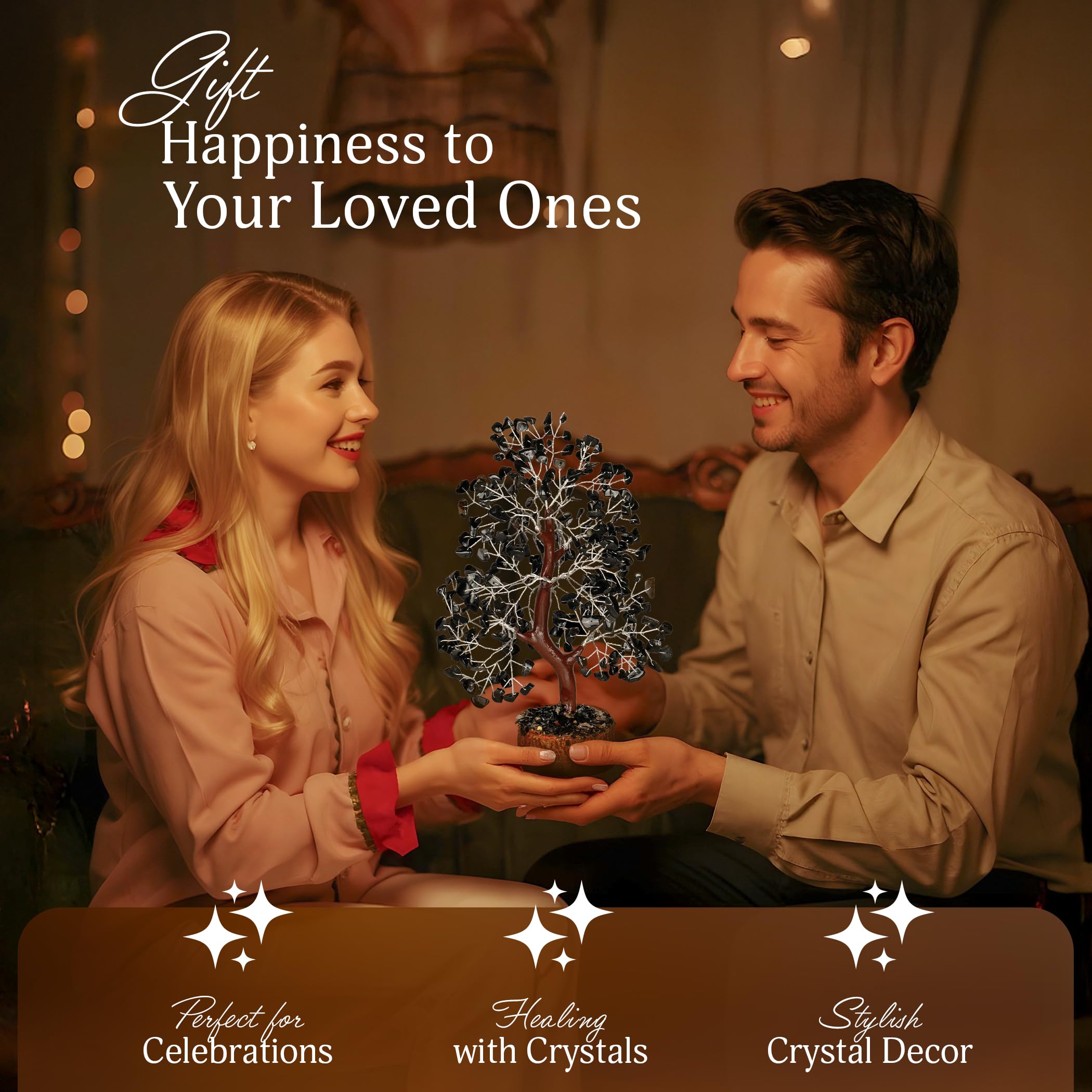 Crystal Home Decor - The black color of this aura crystal fills any environment with royalty. The shining crystal chakra tree is an elegant room décor item, place it on the shelf, or the wall. Can also be used as a housewarming good luck charm item. This bonsai tree can do it all. Filled with chakra healing properties the buddha tree also makes itself a perfect gifting item for spiritual persons, crystal decor, feng shui decor, handmade gifts, etc.