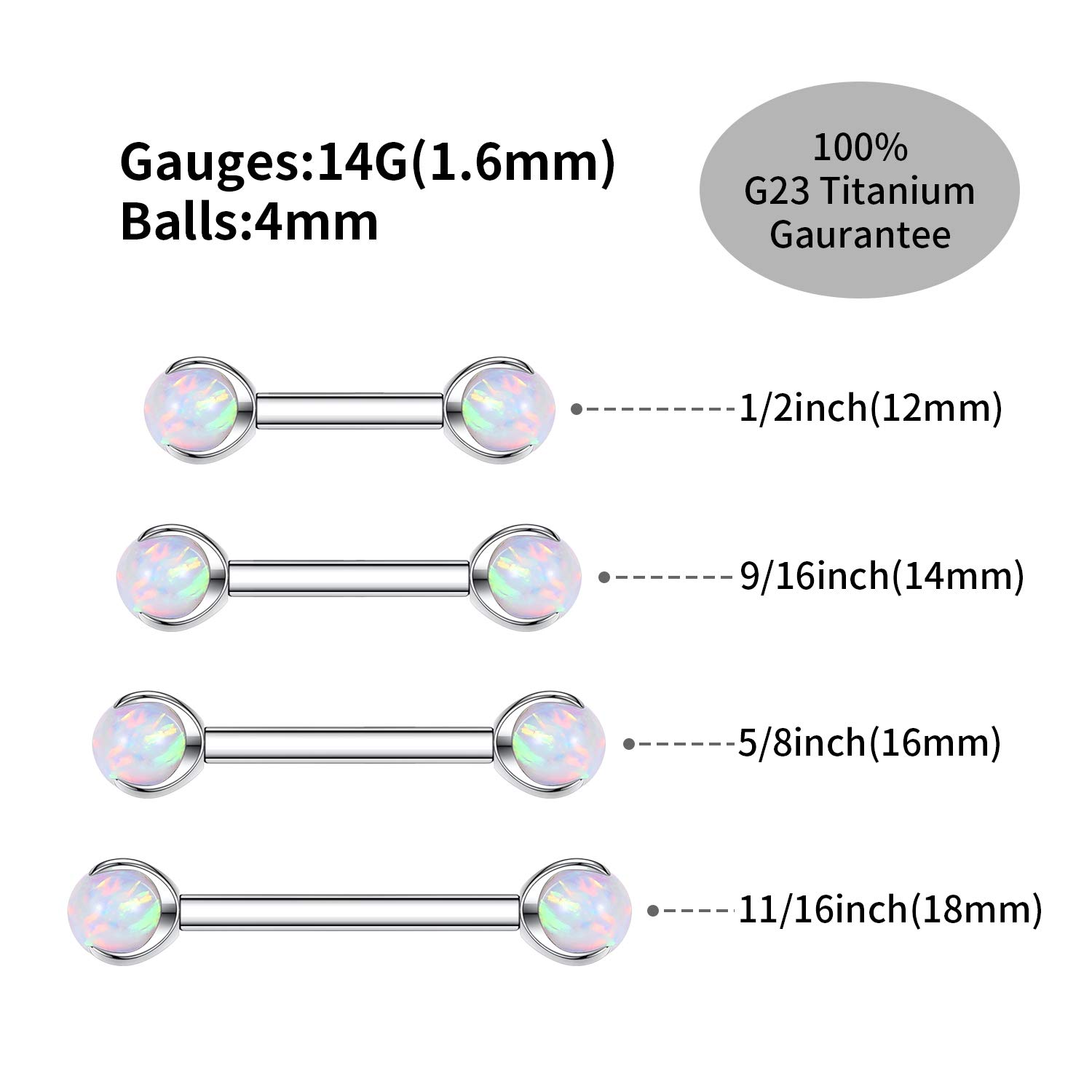 Size: Gauge: 14 G (1.6 mm); Nipple Barbell Length: 1/2"(12 mm); Ball Size: 4 mm, 1 pc nipple ring per order