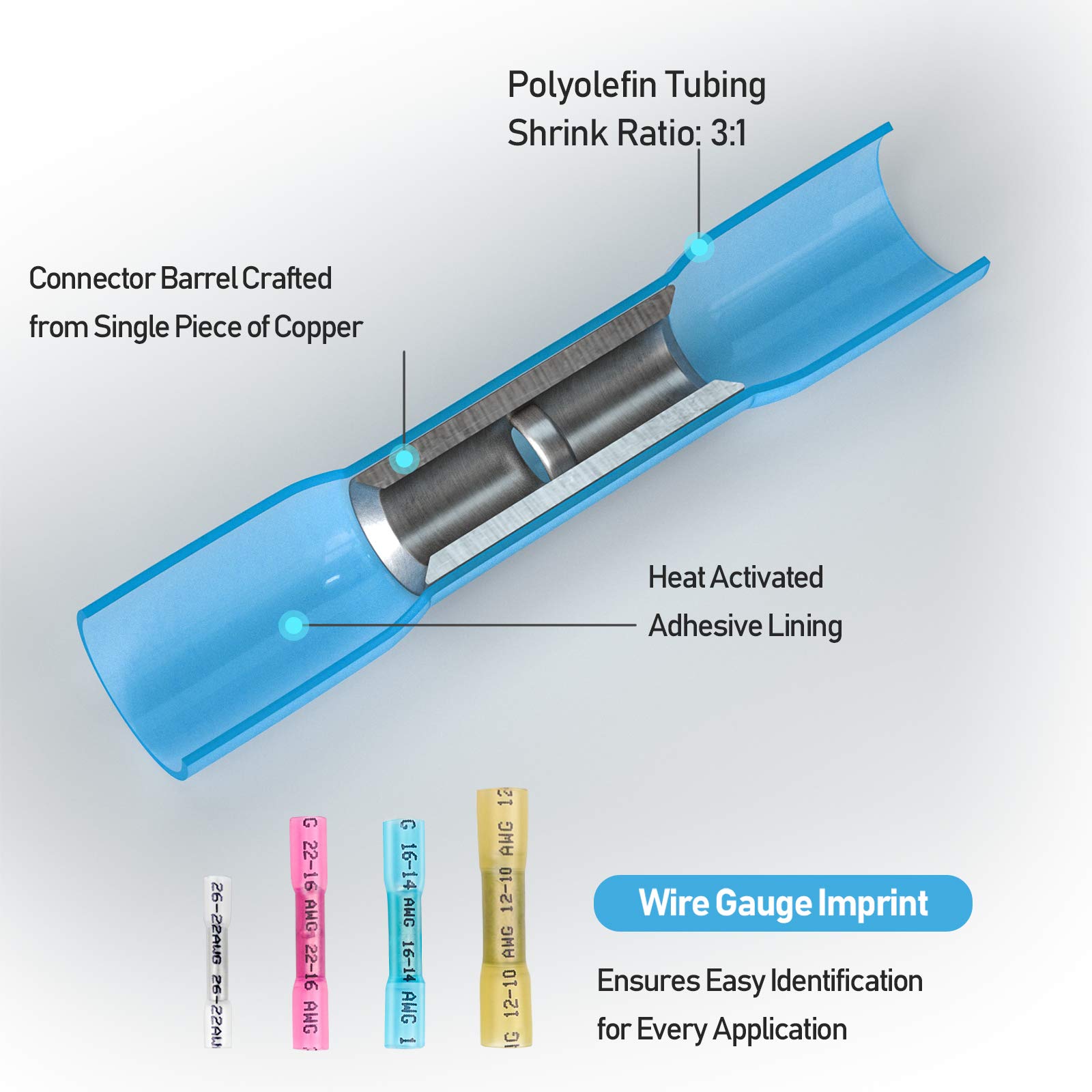 [PREMIUM QUALITY] Copper barrel ensures strong, secure crimping every time, providing minimal voltage drop, high current flow, and less heat. These will prevent short circuits and problematic wiring that inferior connectors are known for