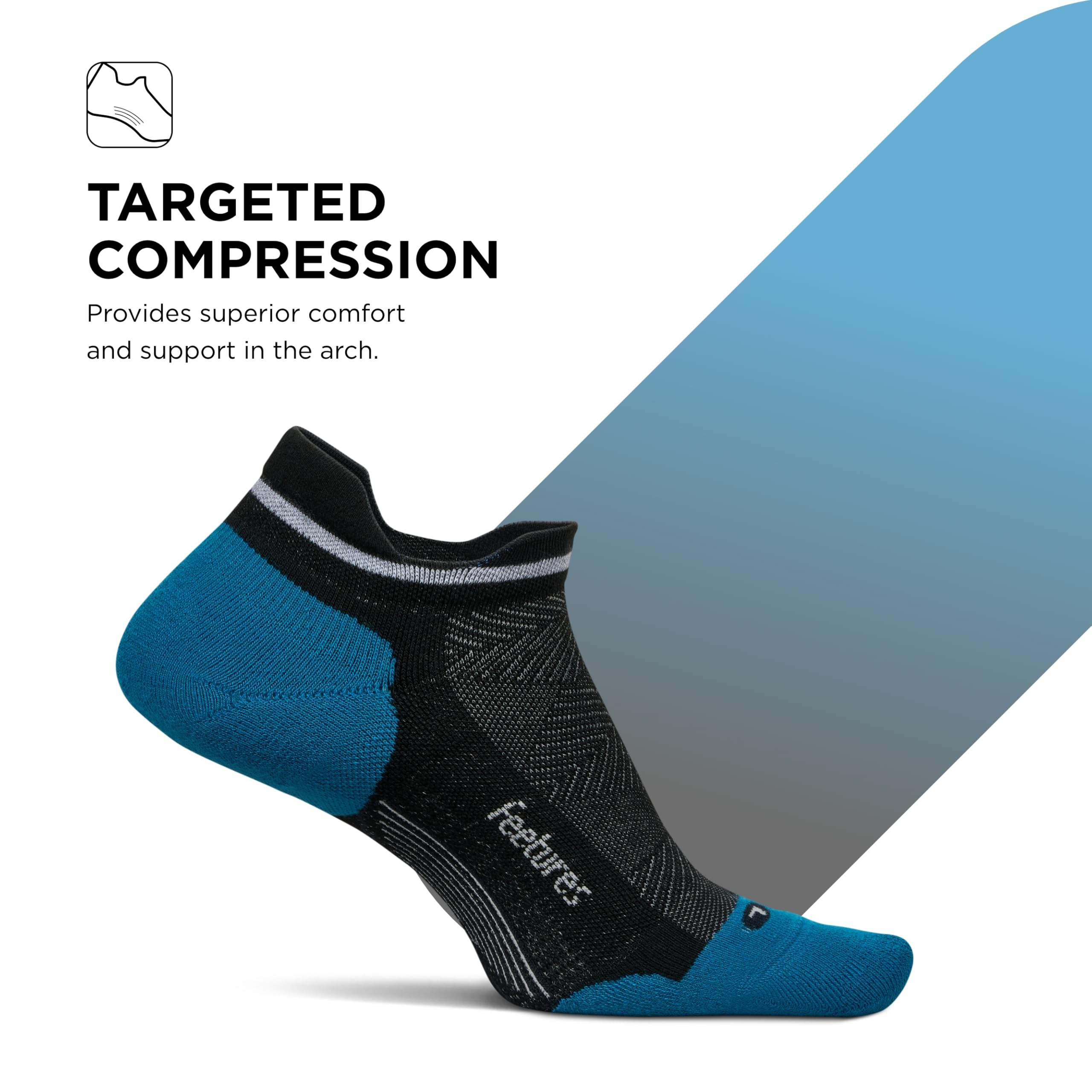 Sports Sock: These Feetures socks are engineered with Targeted Compression and anatomical design that conform to the left and right structure of the foot providing a custom-like fit and reduced risk of blisters