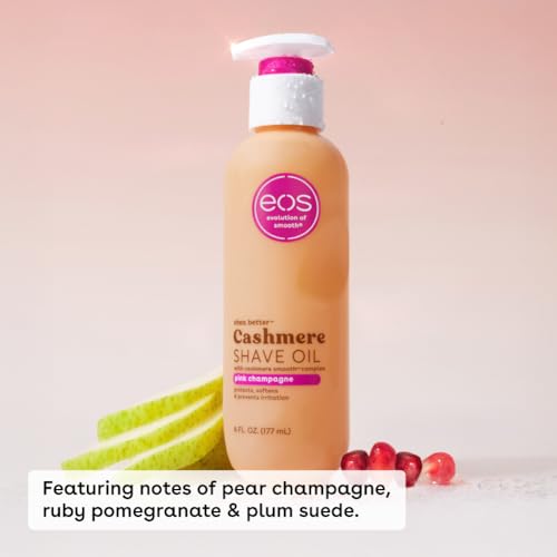Our flirty and delightful Pink Champagne Shave Oil & Serum features notes of pear champagne, ruby pomegranate, and plum suede. This luxuriously silky shave oil protects skin from irritation and razor burn while delivering a smooth, protective shave. Made with our Cashmere Smooth Complex, a rich blend of shea butter, cocoa butter, and argan butter. The shave oil offers a silky formula with oil moisture to replenish and soothe as you shave, gentle enough for a total body shave, including the entire bikini area. Pair this shave oil with our eos body wash and eos body lotion to complete the self care and body care regimen.