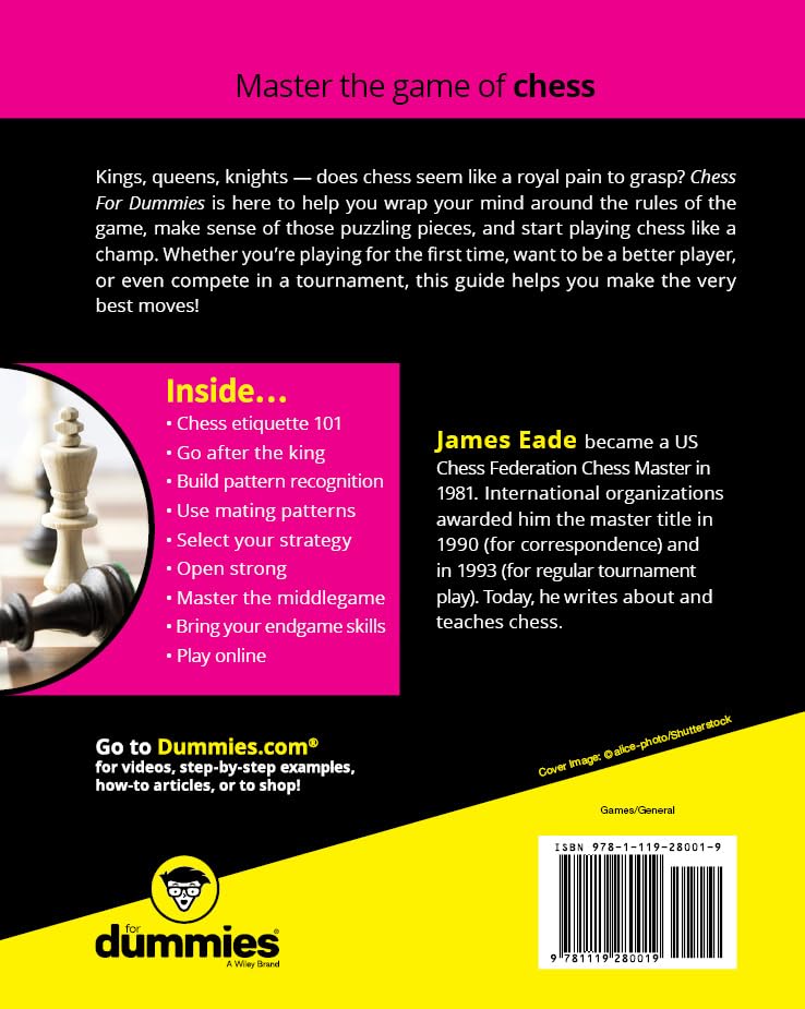 Want to play chess like a champ? Dummies can help. From Netflix's “The Queen’s Gambit” to podcasts, virtual and mobile gaming, and beyond, chess is back in a big way. But, with all those kings, queens, and knights, chess can be a royal pain to grasp. Chess For Dummies is here to help beginners wrap their minds around the rules of the game, make sense of those puzzling pieces, and sharpen their chess strategy such that even Paul Morphy would be impressed. You’ll learn the laws of chess, its lingo, and engage in the art of the attack with the easy-to-follow, step-by-step explanations found in the latest edition of Chess For Dummies. Whether you’re playing chess online, in a tournament, or across the dining room table with a family member or friend, this hands-on guide is sure to capture your interest (and your opponent's queen), getting you up to speed on the game and its components and giving you the know-how you need to put the principles of play into action from the opening to the endgame. Grasp the rules of play and the nuances of each phase of the game Familiarize yourself with the pieces and the board Pick the perfect chess set and chessboard for you Get to know each of the pieces and their powers If you feel like you’re in a stalemate before you even begin a game, Chess For Dummies is your guide to forcing moves, raking bishops, and skewering your opponents like a true champion.