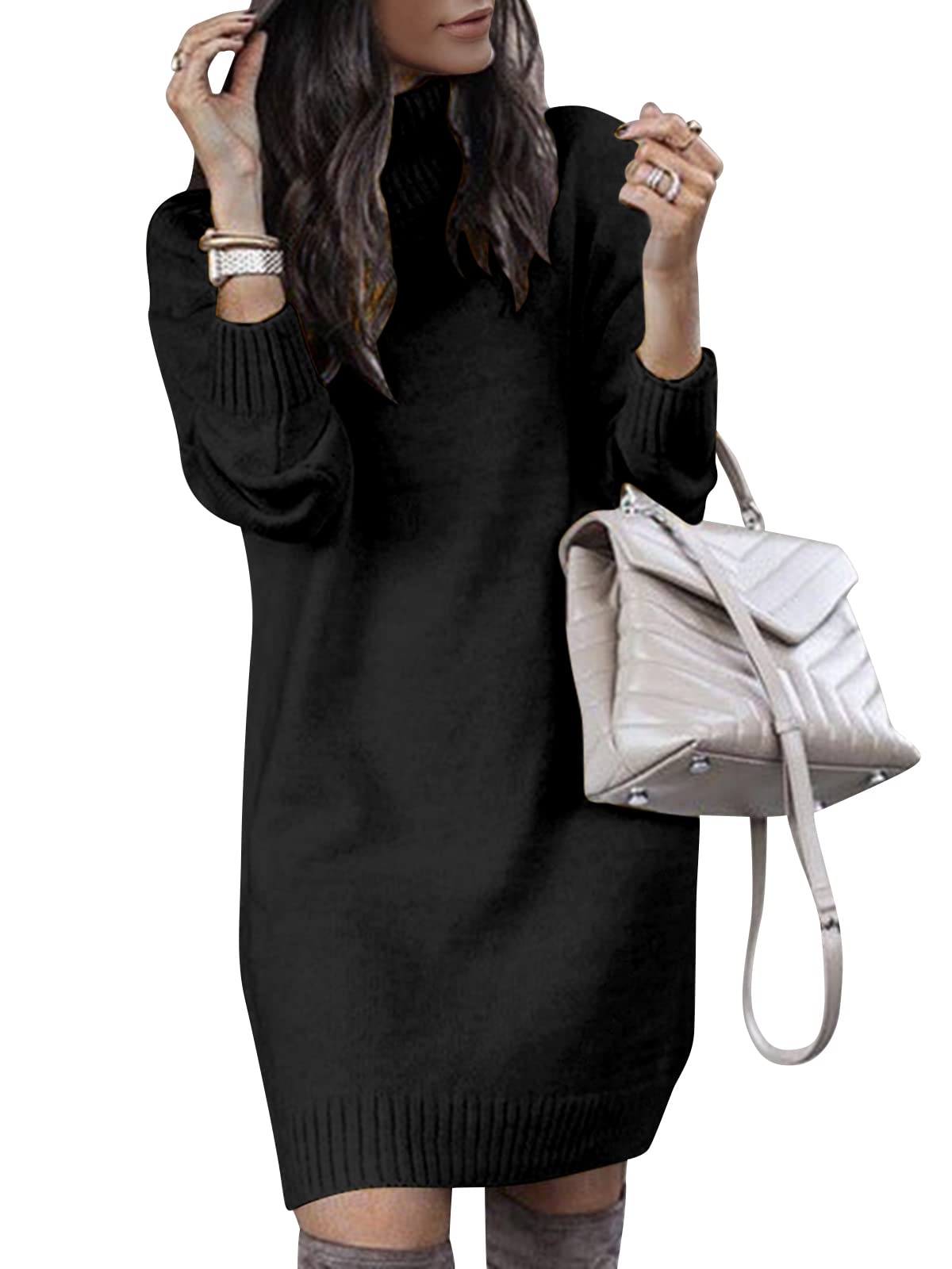 Sweater dresses for women 2025, mini dresses for women, fall sweater dress, lantern long sleeve dress, ribbed knit dress, mock neck, loose fit, classic solid color, above knee length, slouchy and baggy style, maternity dress, winter dress, cocktail party dress