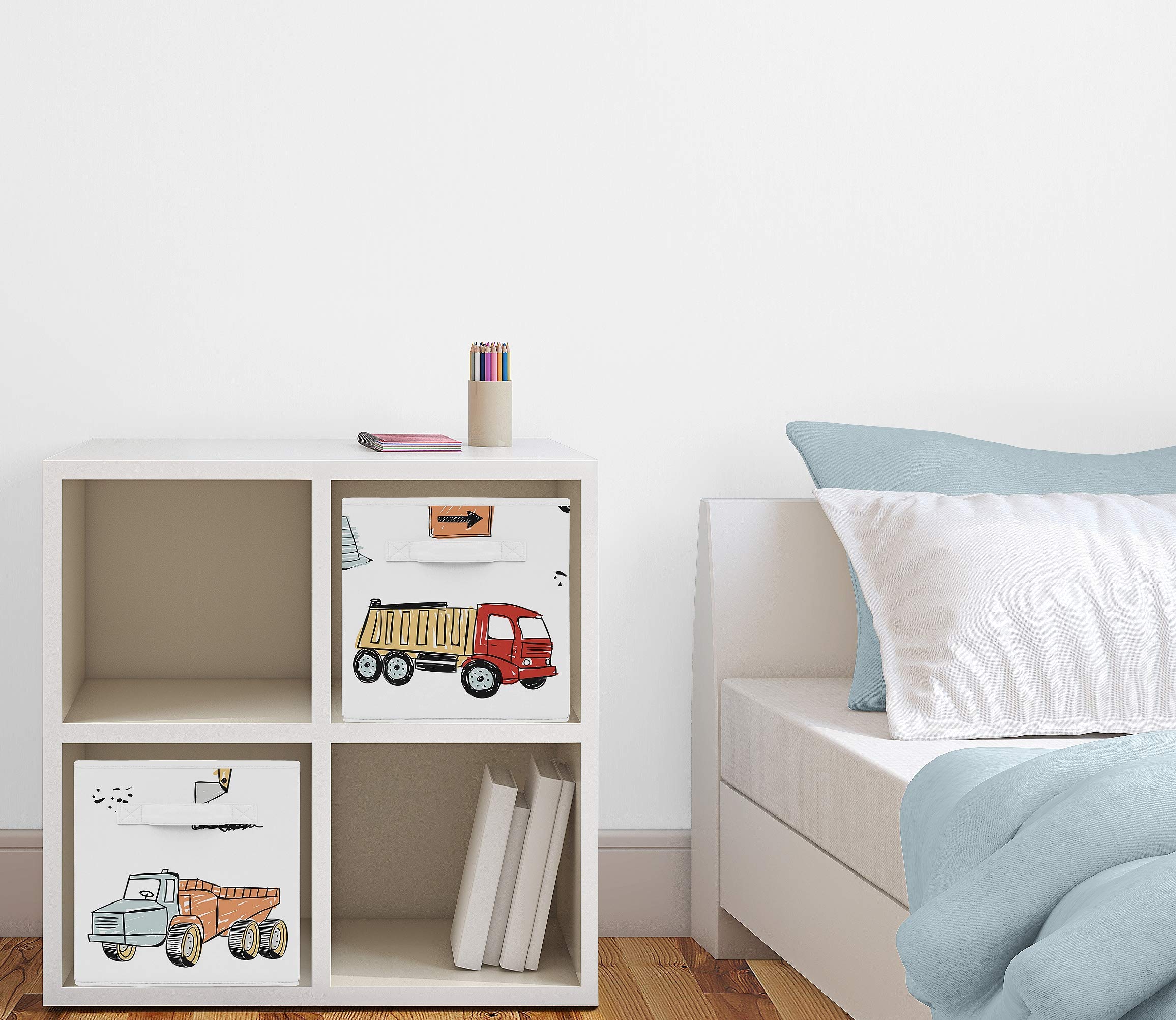 Reinforced fabric handles allow bins to easily slide in and out of most standard cube shelving