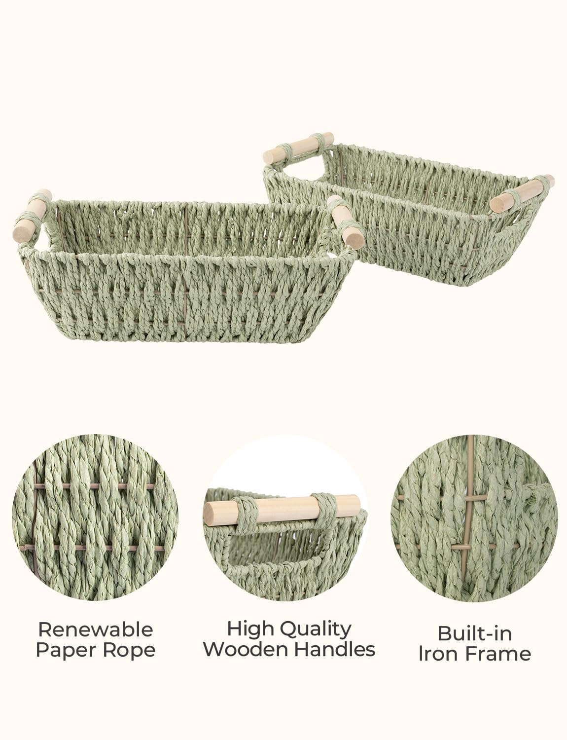 Recyclable and cleanable materials: Our wicker baskets are hand-woven with clean and renewable round paper rope, which helps to minimize the impact on the environment.