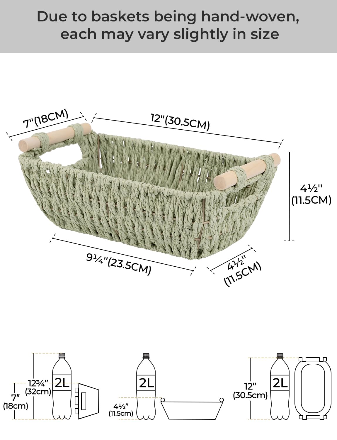 Size Tips: There are two same size baskets in a set. The dimensions of the item are 12 inches in length, 7 inches in width, and 4.5 inches in height. Please kindly note that the baskets may vary slightly in size handwoven design and manual measurement.