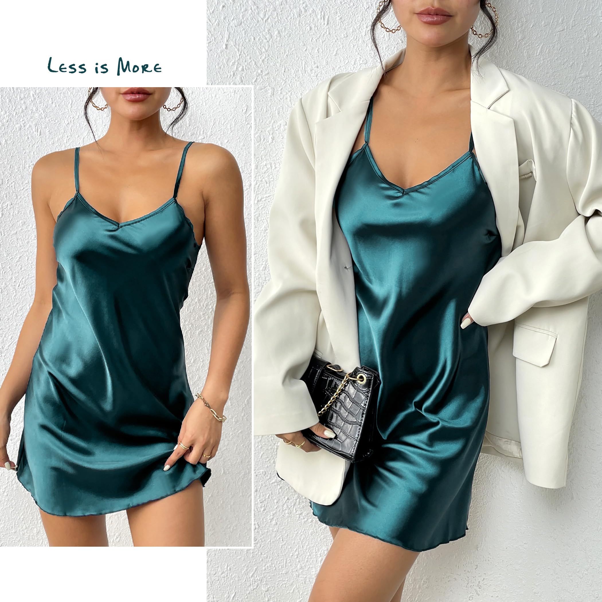 Chic Design: Silky camisole nightdress features adjustable spaghetti straps, sexy V-neck, wavy hemline, A-line silhouette, and mid-thigh length. The relaxed, flowy cut drapes beautifully, offering effortless elegance with a hint of allure