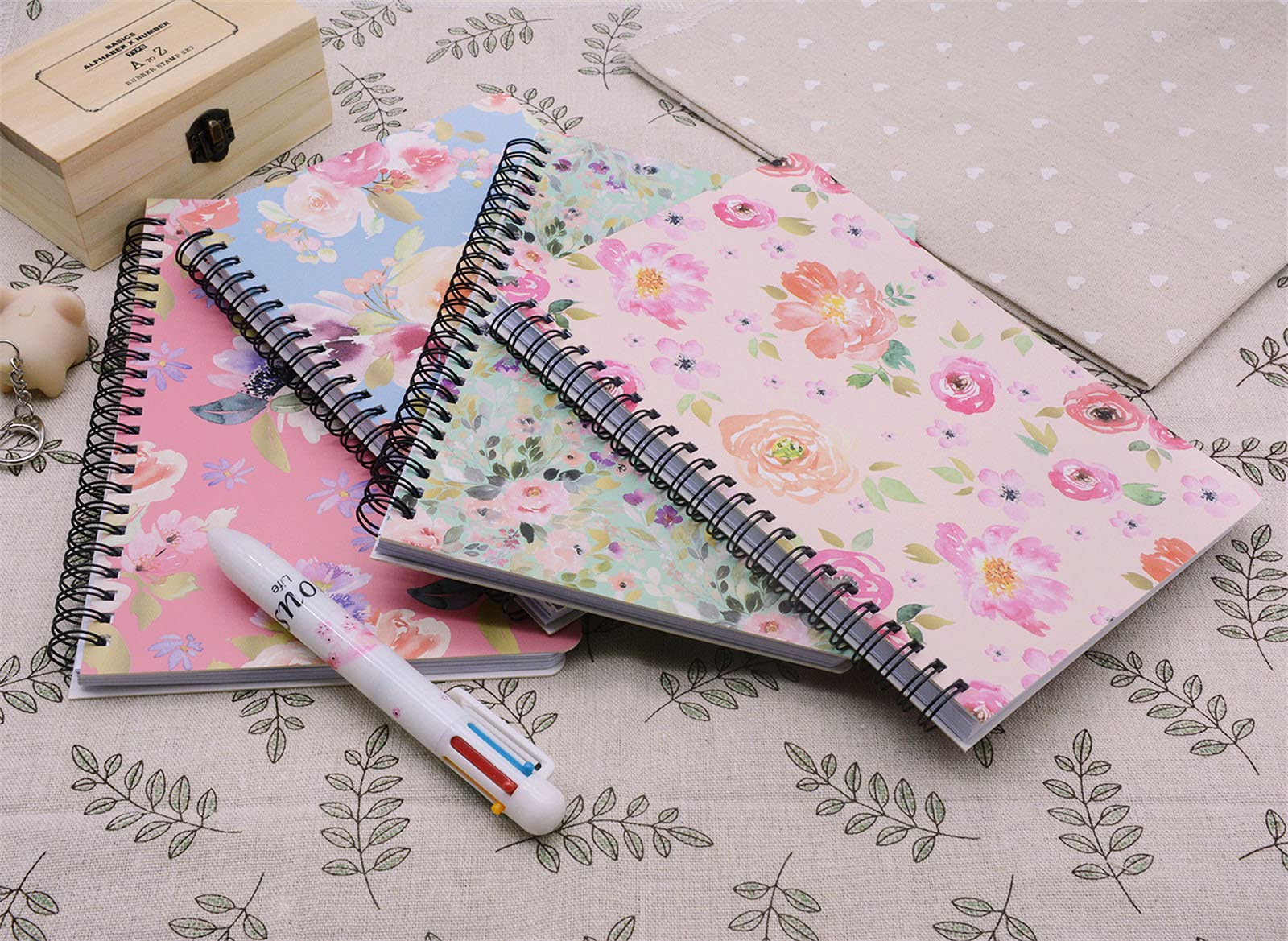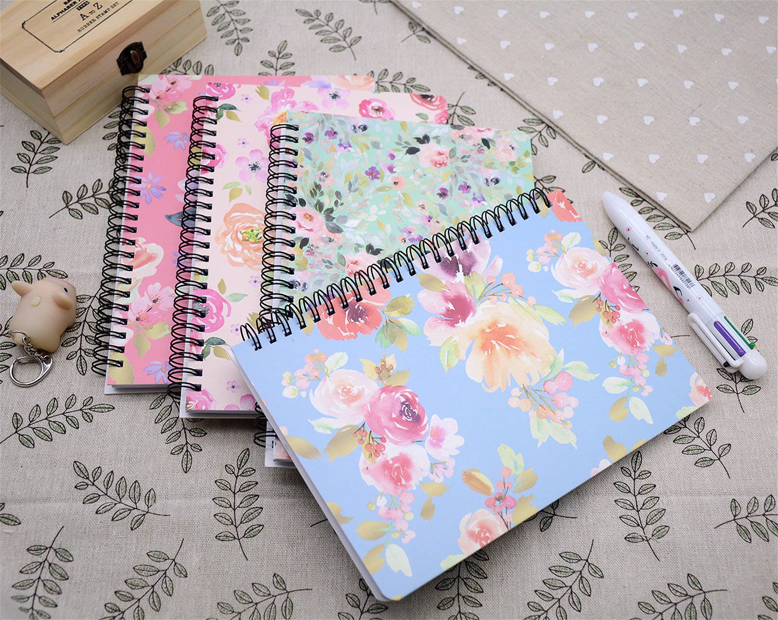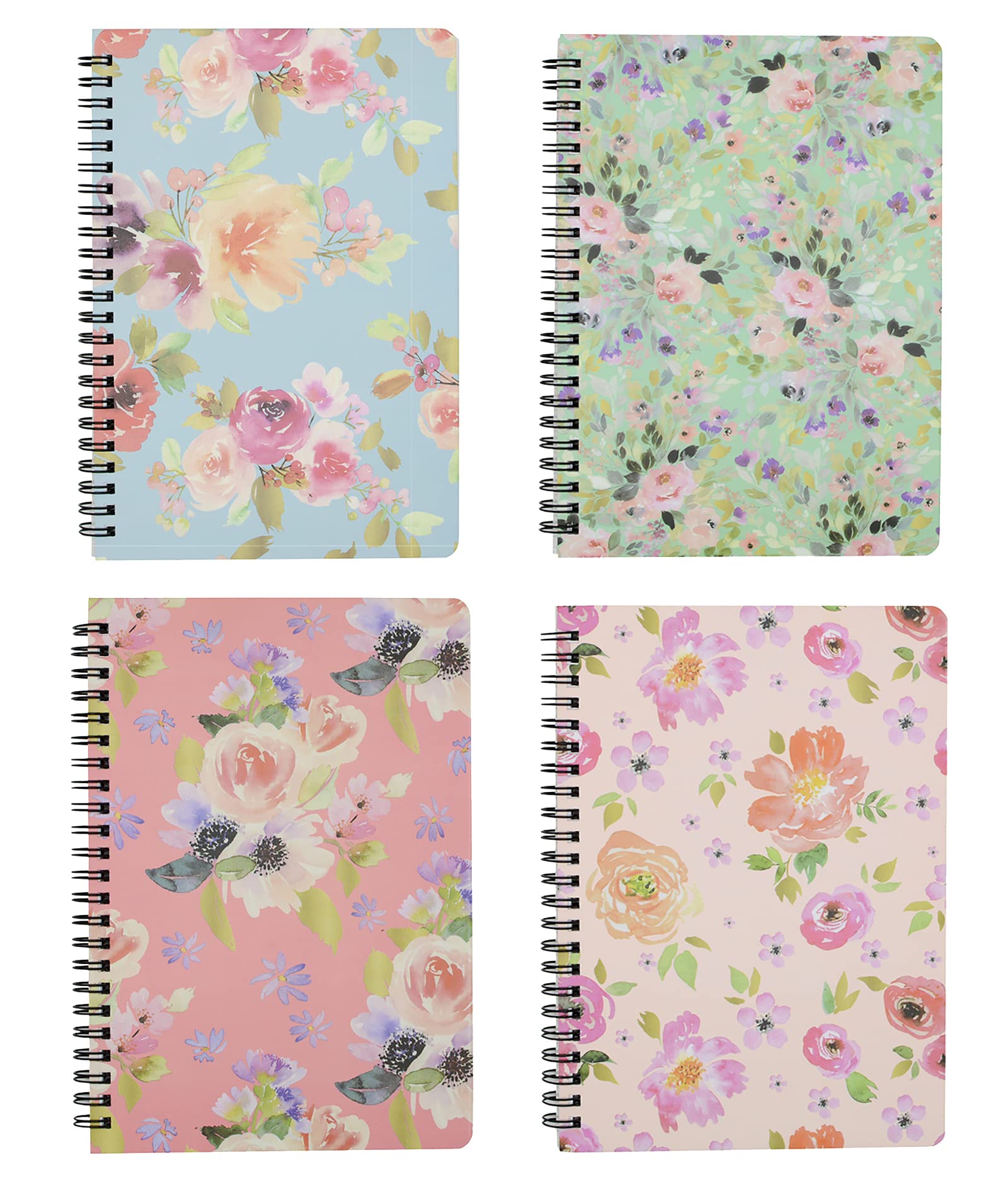 Spiral Notebook, 4 Pcs A5 Thick Flower Design Hardcover 8mm Ruled 4 Color 80 Sheets -160 Pages Journals for Study and Notes (flower)
