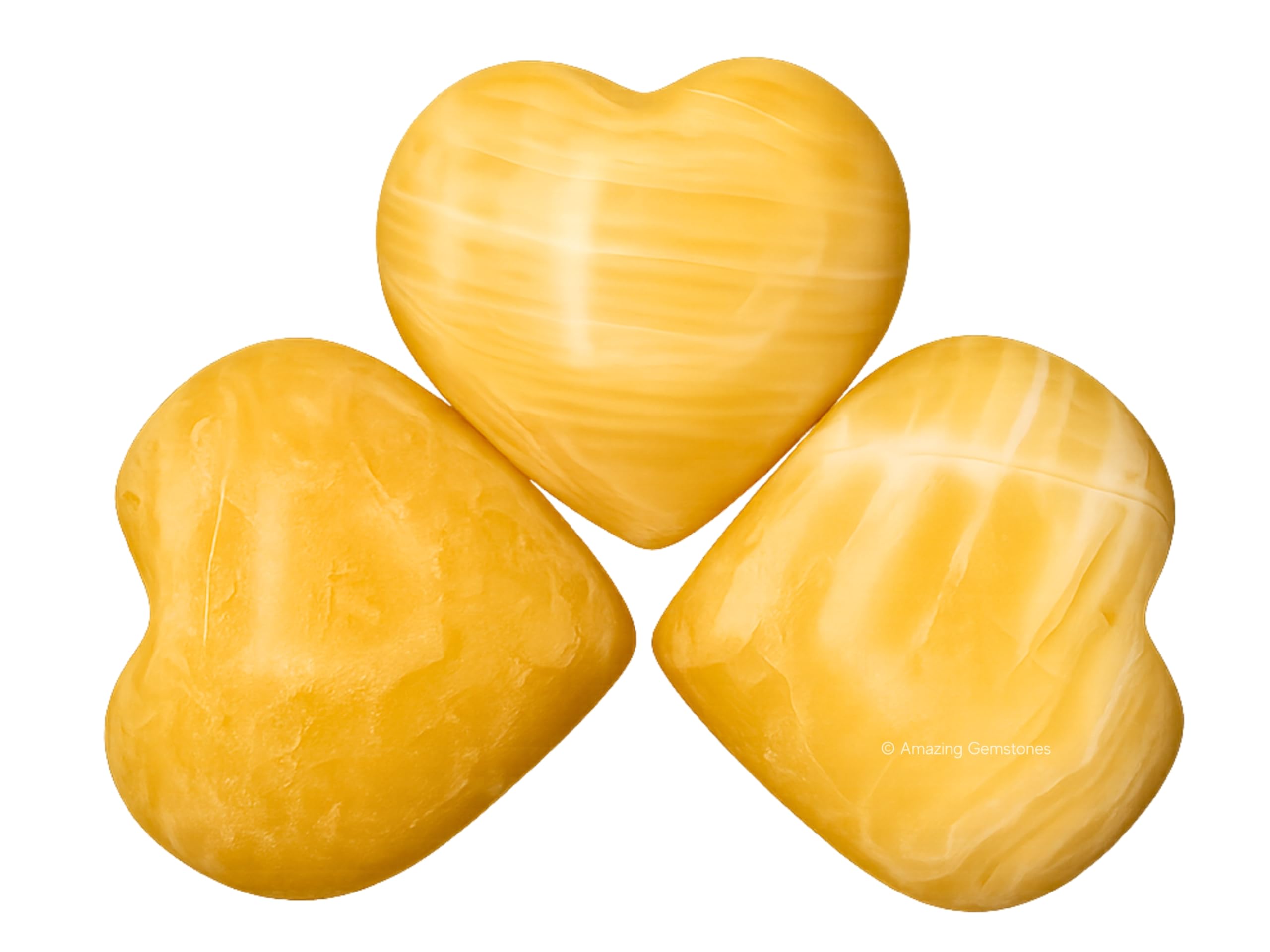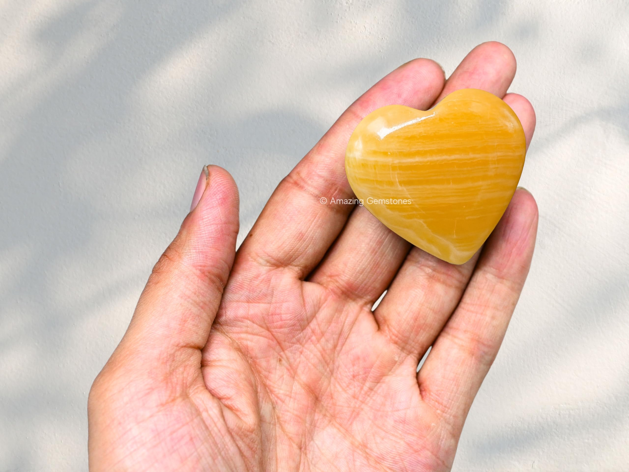 Yellow Calcite Crystal Heart Palm Worry Stones are polished heart shaped stones that can be used for Back, Neck, Face and Feet Massage therapy, Chakra Balancing, Reiki Healing, Crystal Grid Meditation and many other esoteric healing practices.