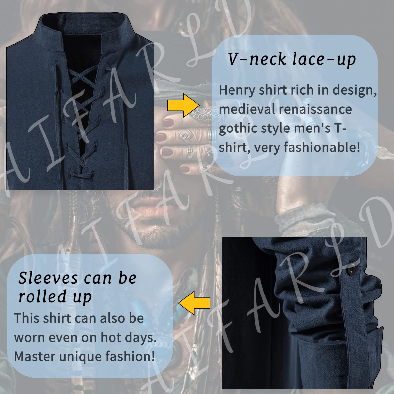 LACE UP DESIGN: The medieval renaissance shirt has a novel design with a laced design. The drawstring design makes the overall look more retro. And this shirt can be matched with any pants: for example, casual pants and white shoes.