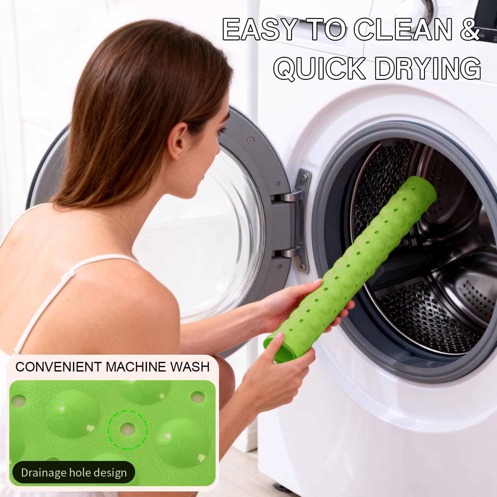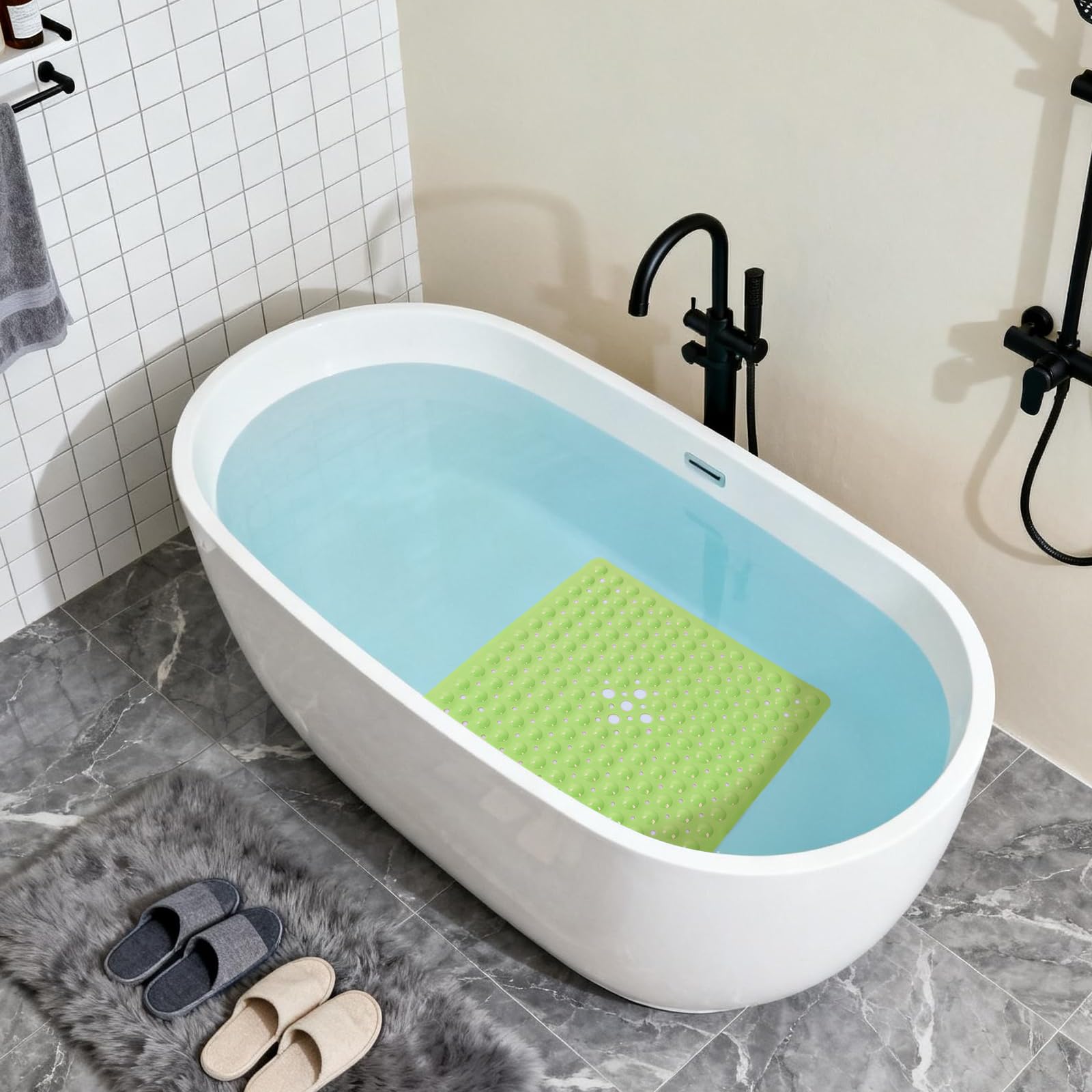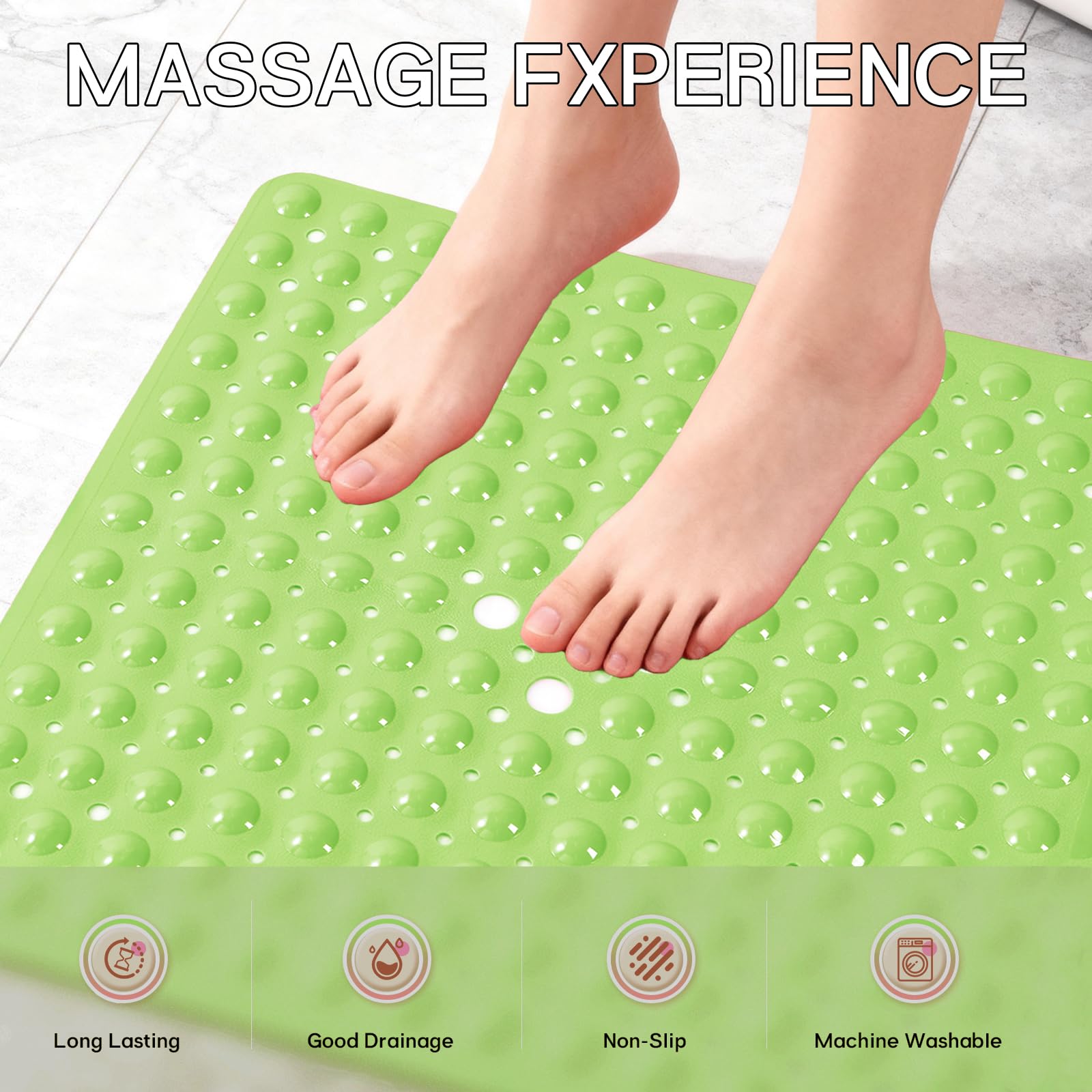 MACHINE WASHABLE: Conveniently machine-washable and easy to maintain, this non-slip bathtub mat can be effortlessly cleaned. Simply toss it into the machine and wash it on a cold water setting. Afterward, hang it to dry. We recommend periodically rinsing and air-drying the shower mat.