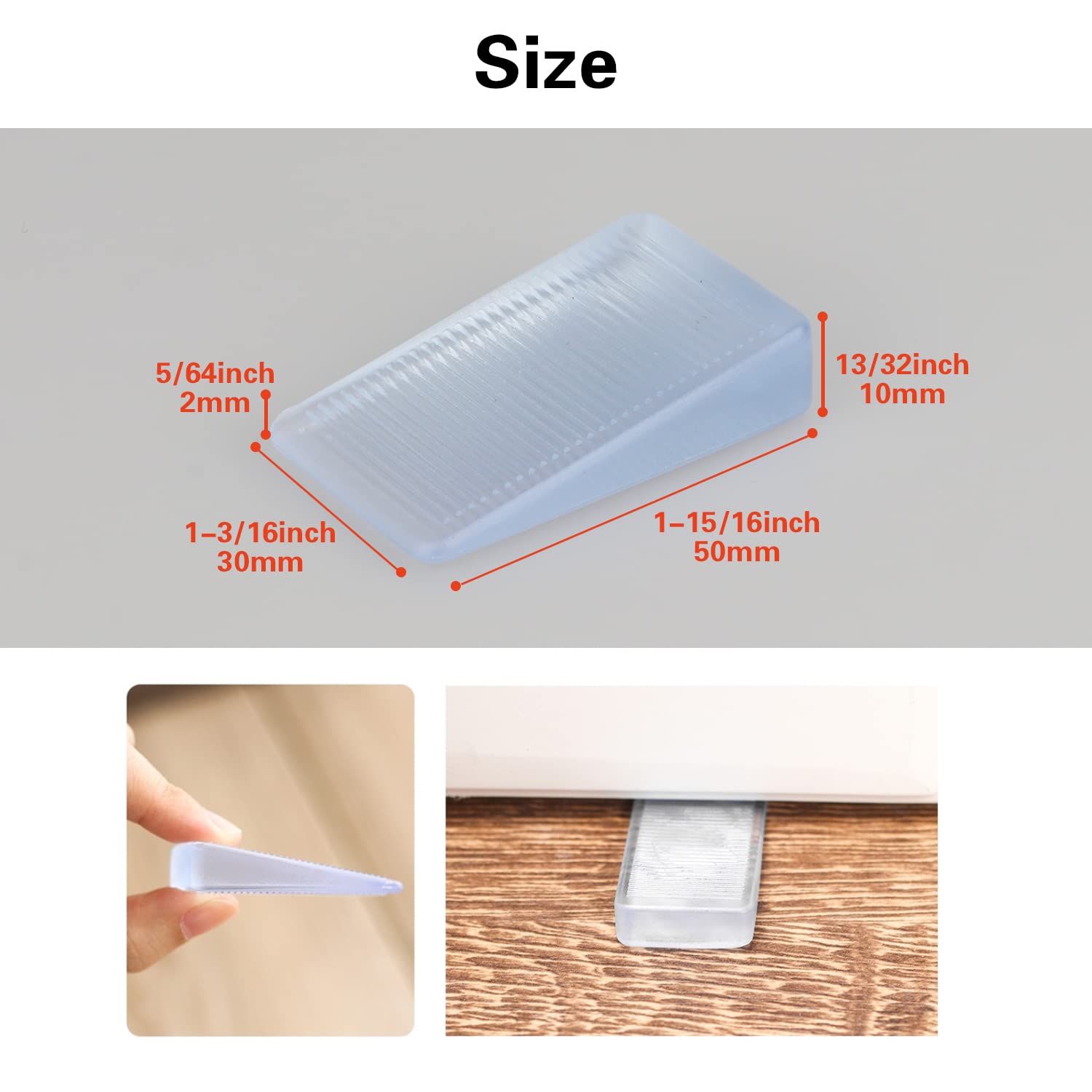 SIZE DETAILS >>> Pack of 8. Color: clear. The wedges shims Length: 1-15/16Inch (50mm), Width: 1-3/16inch (30mm), Height of Shorter Side: 5/64Inch (2mm), Height of Higher Side: 13/32Inch (10mm). Note: Please view the fifth picture about product size.