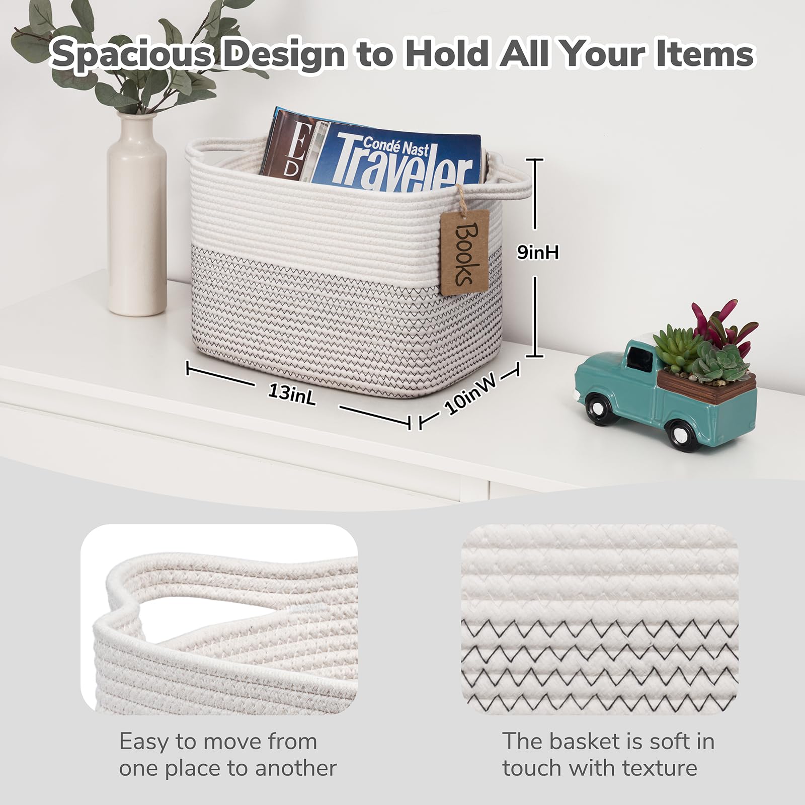 Multifunctional Woven Basket: Measuring 13 x 10 x 9 inches, this basket offers generous storage space. It's both safe and stylish, perfect for organizing everyday items like blankets, toys, or office supplies on shelves, keeping your living space tidy