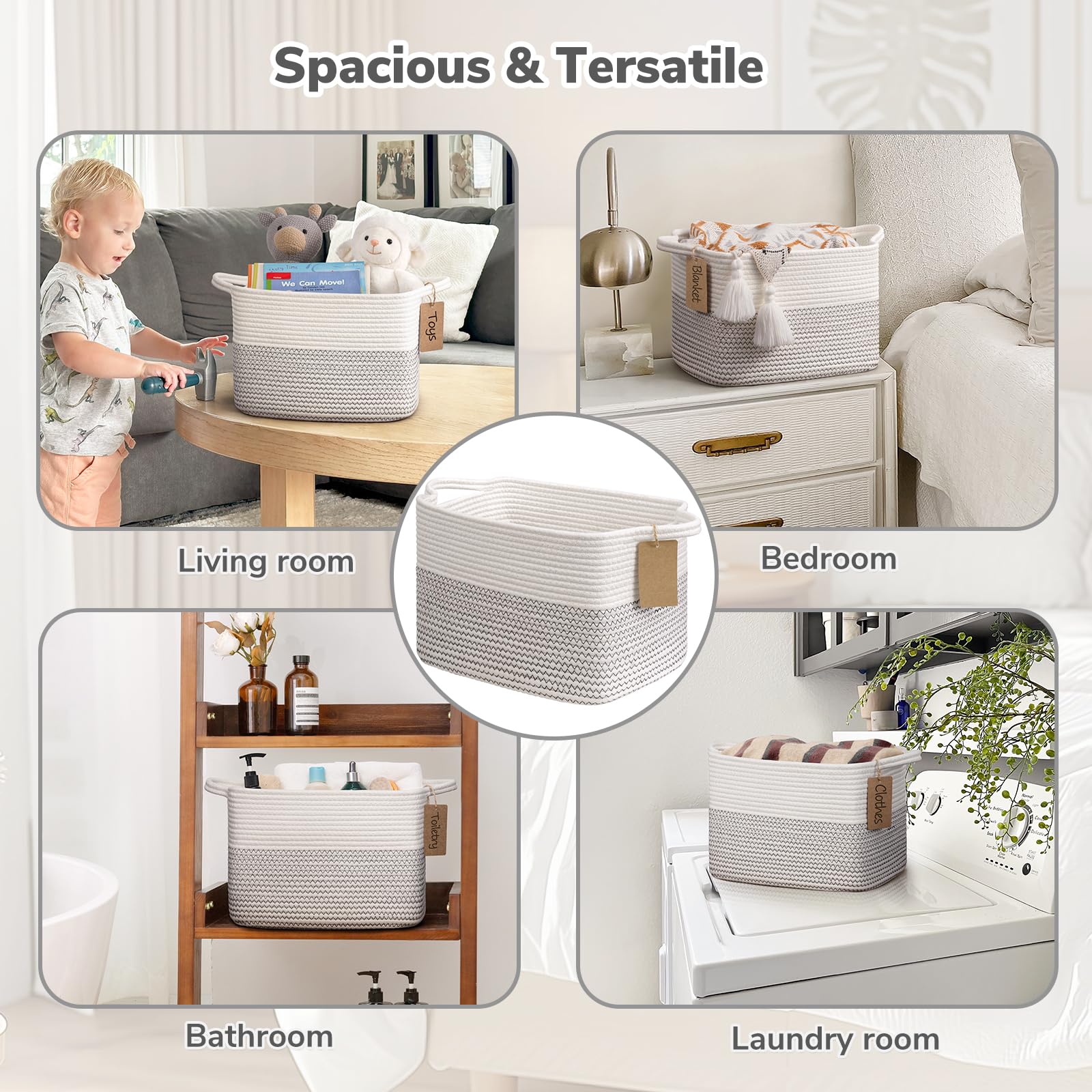 Rope Storage Basket: Equipped with labels! When you write words on the label, such as laundry supplies, toys, towels, etc. Even if this storage basket is placed high, you will immediately know what you are storing