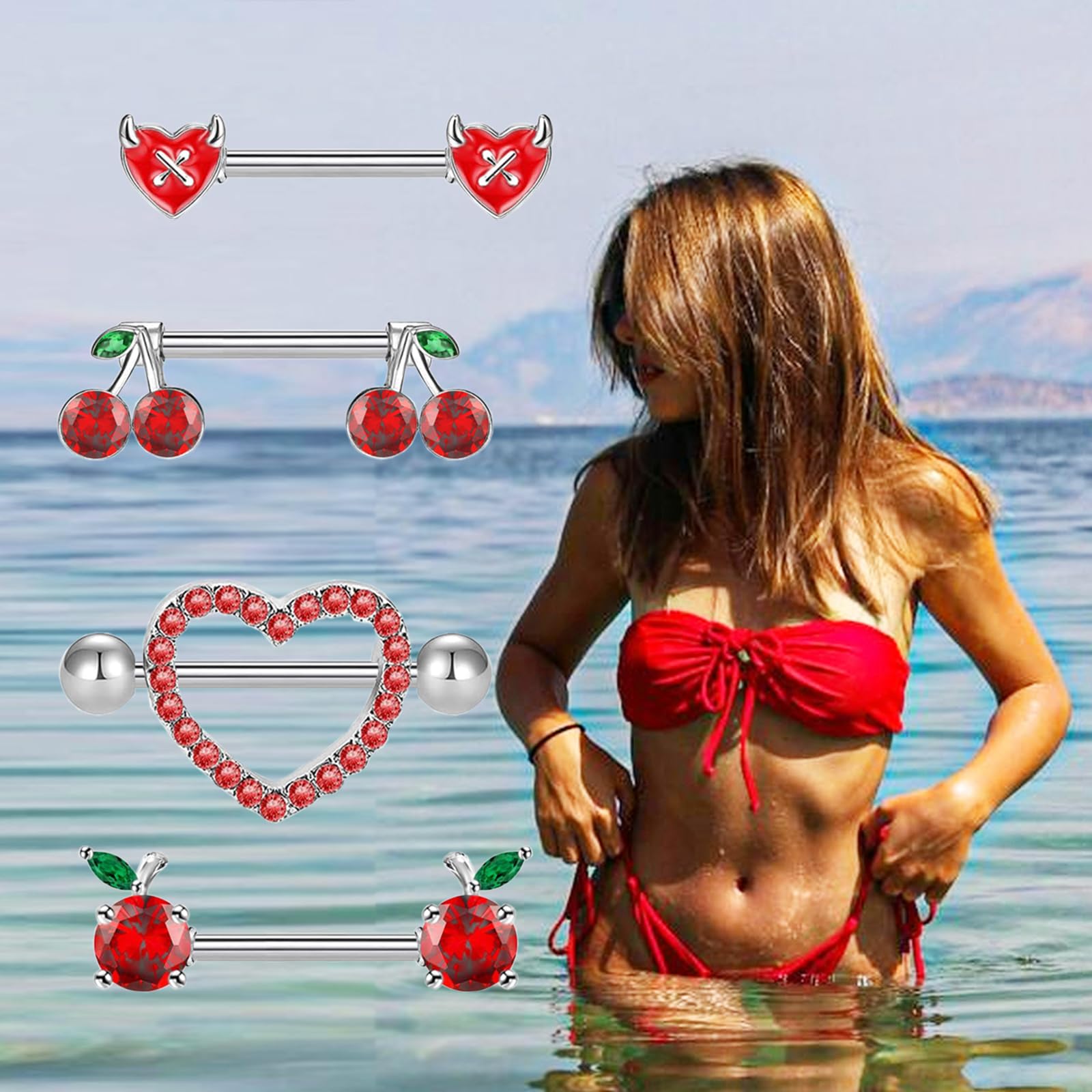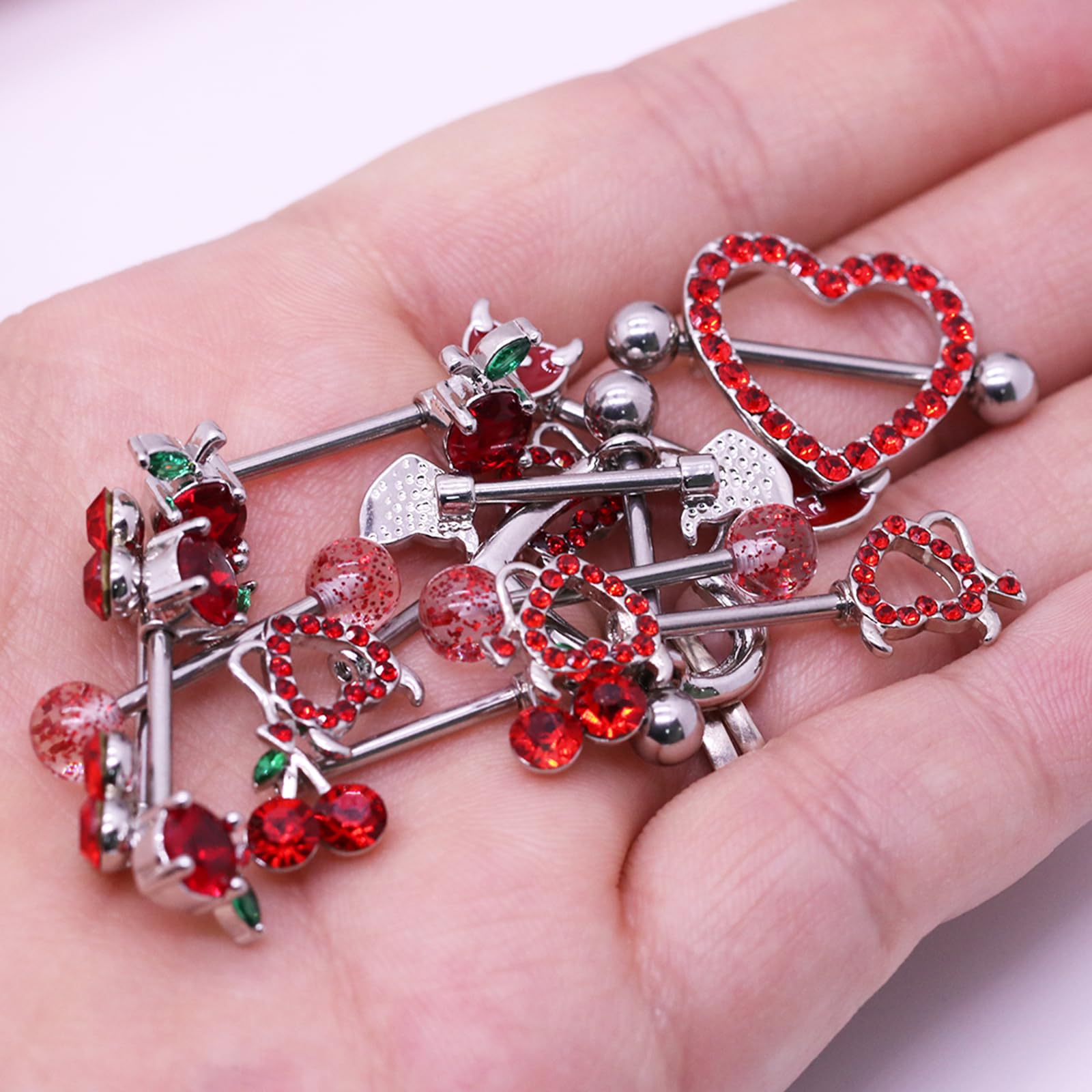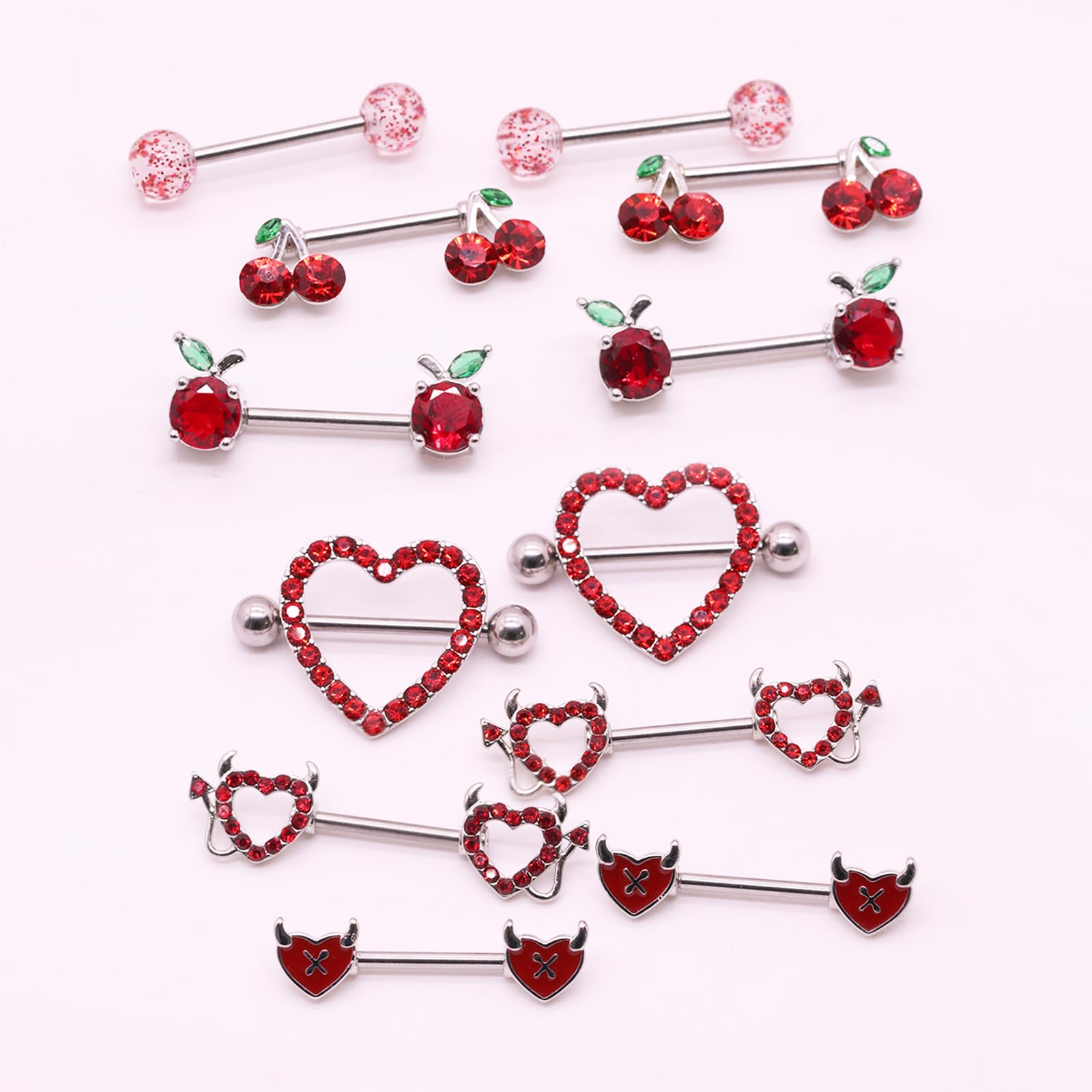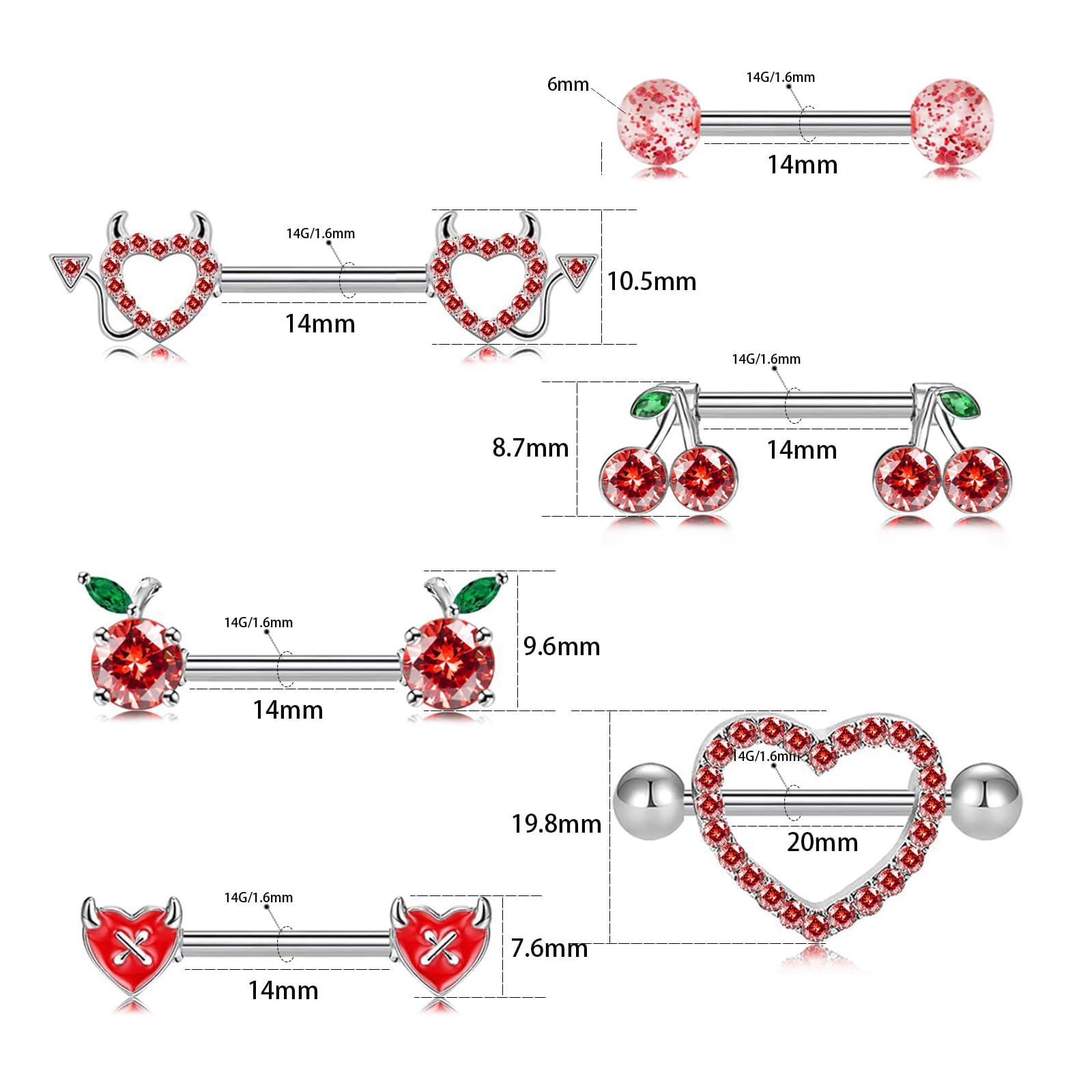 Product Style: 6 Pairs 14G Heart,Devil etc CZ nipple barbell design jewelry for women.