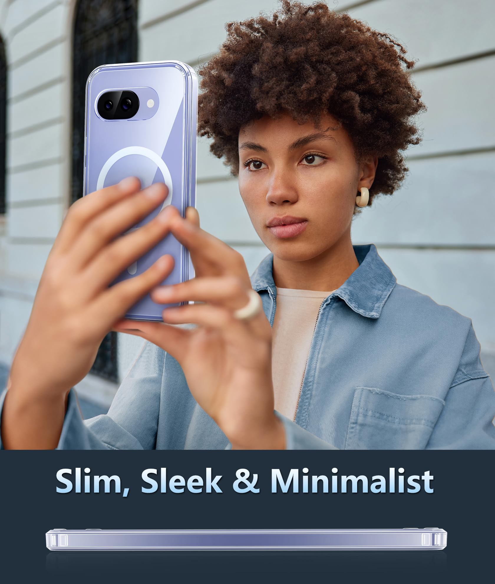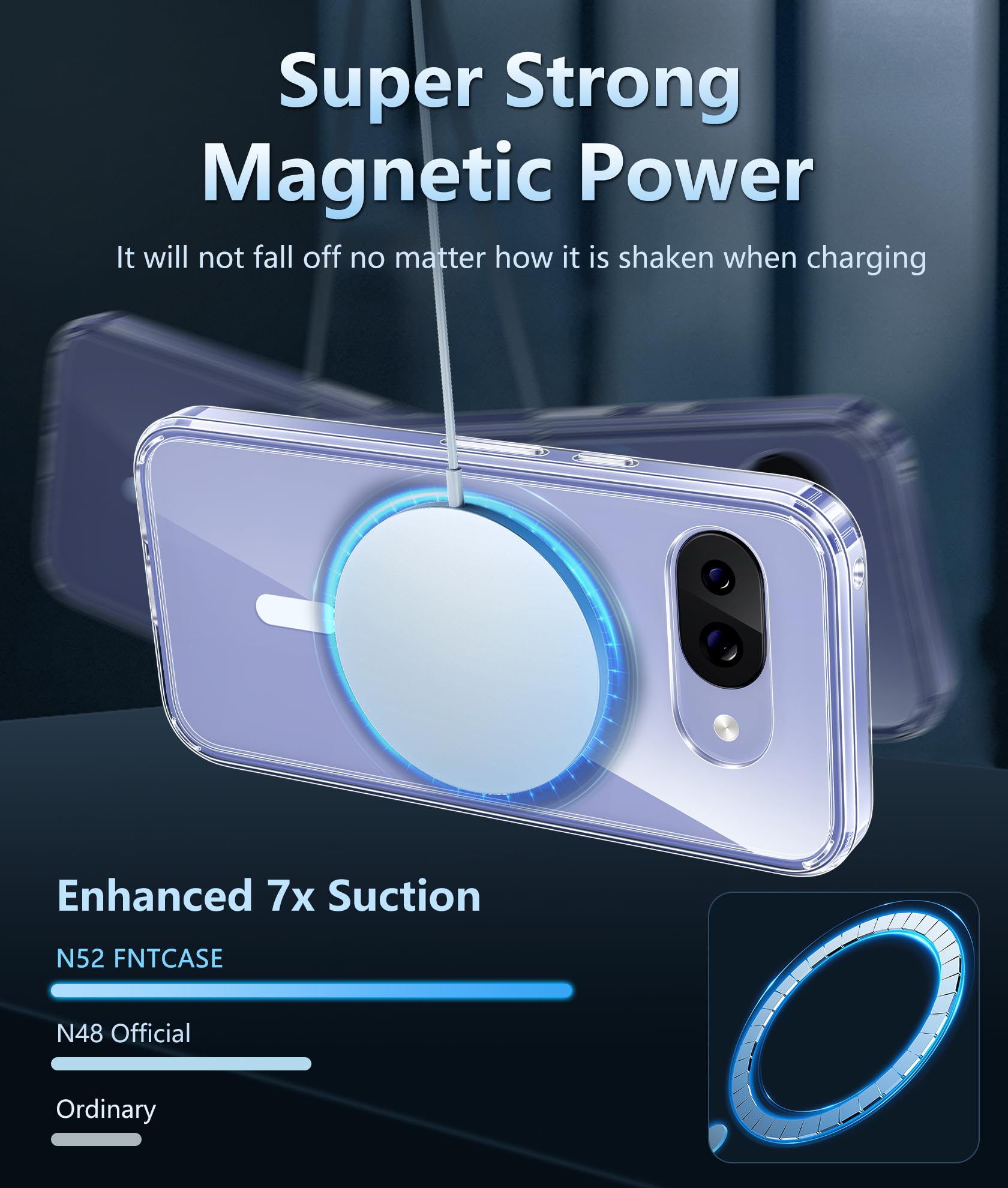 Strong Magnetic Attraction: Compatible for Magnetic chargers and other Qi Wireless chargers without signal influence. The Google Pixel 9a magnetic case has built-in 38 super N52 magnets. Its magnetic attraction reaches 2400 gf