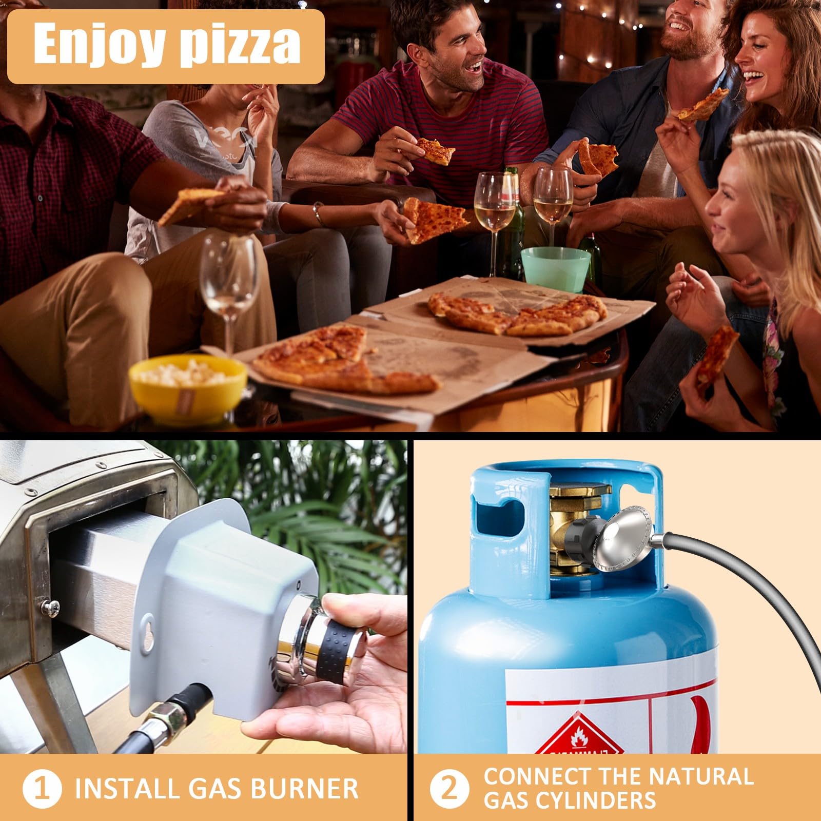 🔥Cook with Precision: Take control of your cooking with 6 adjustable heat levels. Whether you're baking Neapolitan pizzas, roasting meats, grilling vegetables, or baking bread, this pizza oven gas burner attachment lets you fine-tune the temperature for any dish.